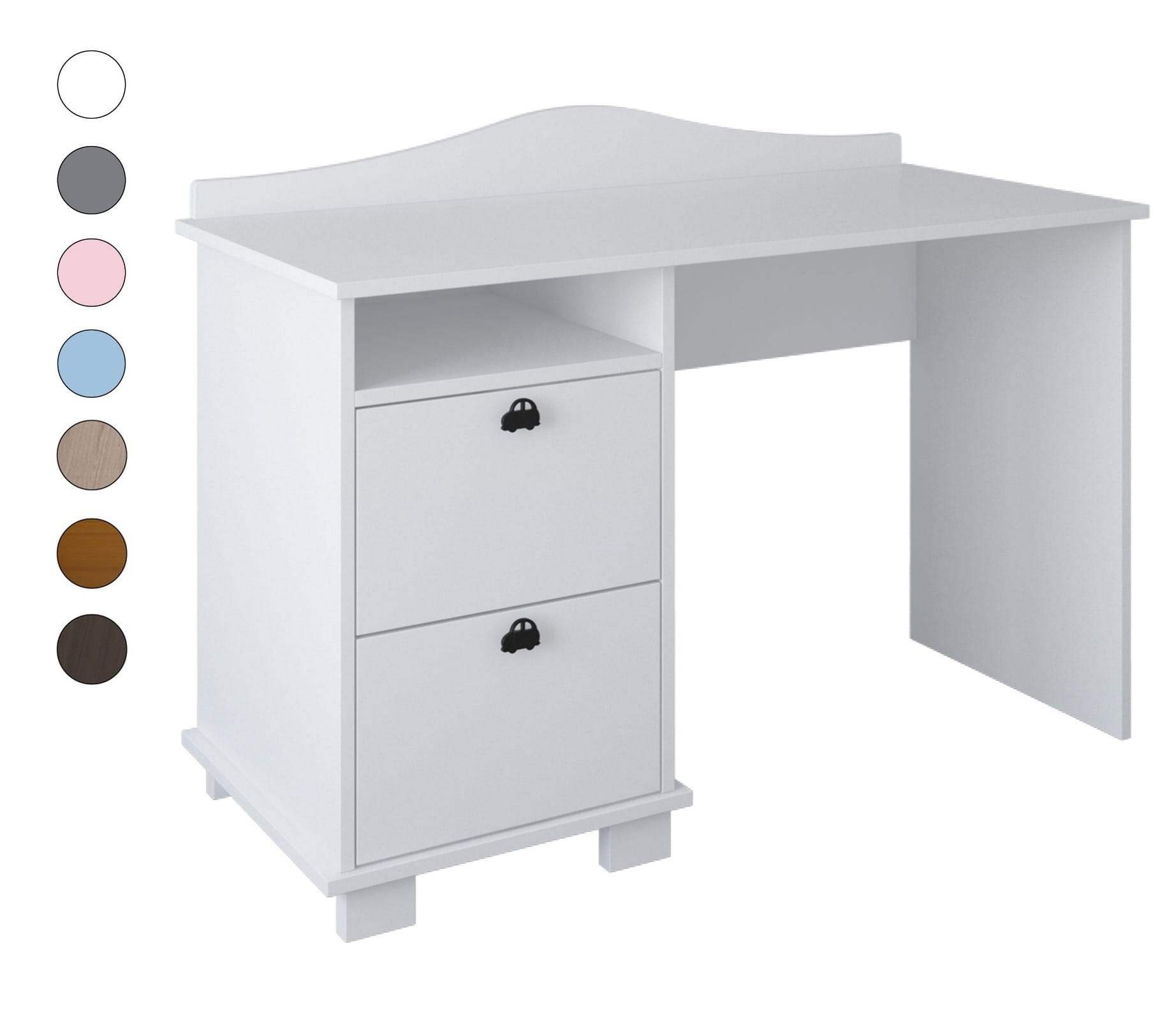 Biurko z kolekcji CARS to piękny, klasyczny mebel gdzie proste formy zostały podkreślone zdobieniami w kształcie autek.