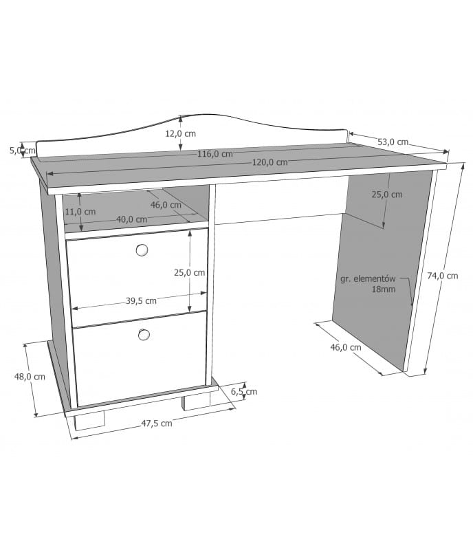 - możliwość wyboru koloru blatu (UWAGA! biurko nie występuje w kolorze olcha)