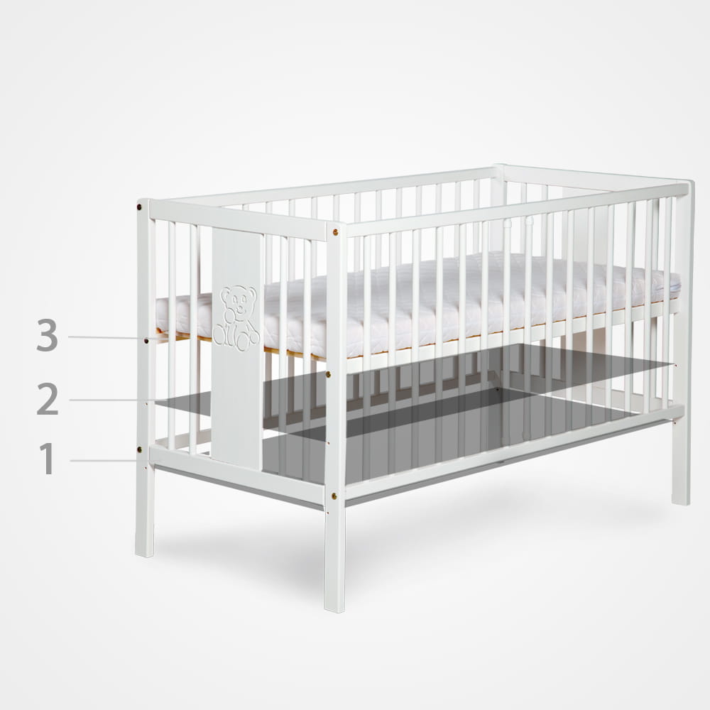 regulowana wysokość dna łóżeczka - 3 poziomy wysokości dna łóżeczka