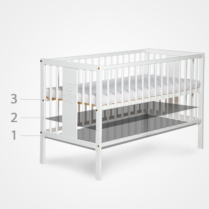 regulowana wysokość dna łóżeczka - 3 poziomy wysokości dna łóżeczka