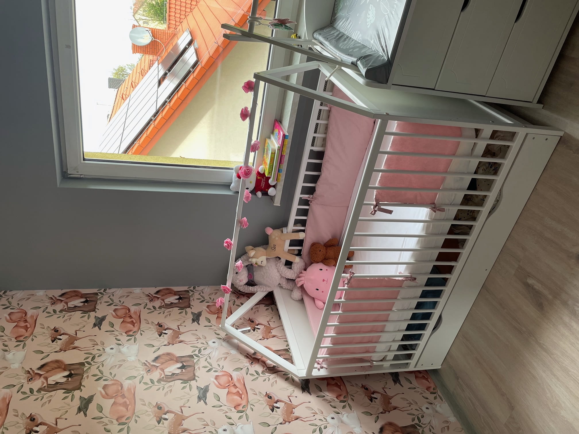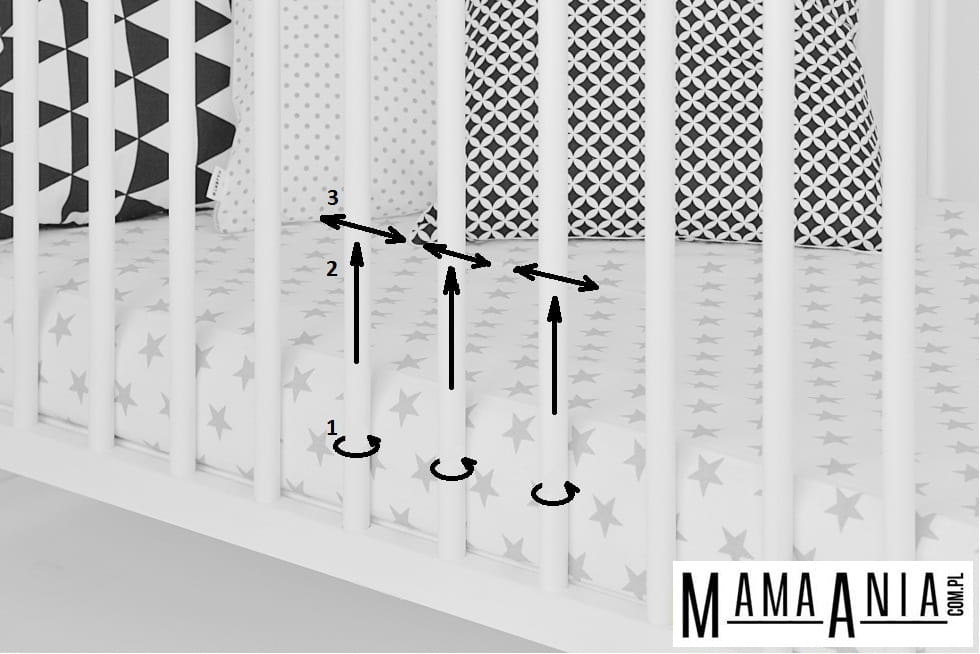 - 3 wyjmowane szczebelki- funkcja niezbędna dla starszego dziecka które samodzielnie wychodzi z łóżeczka
