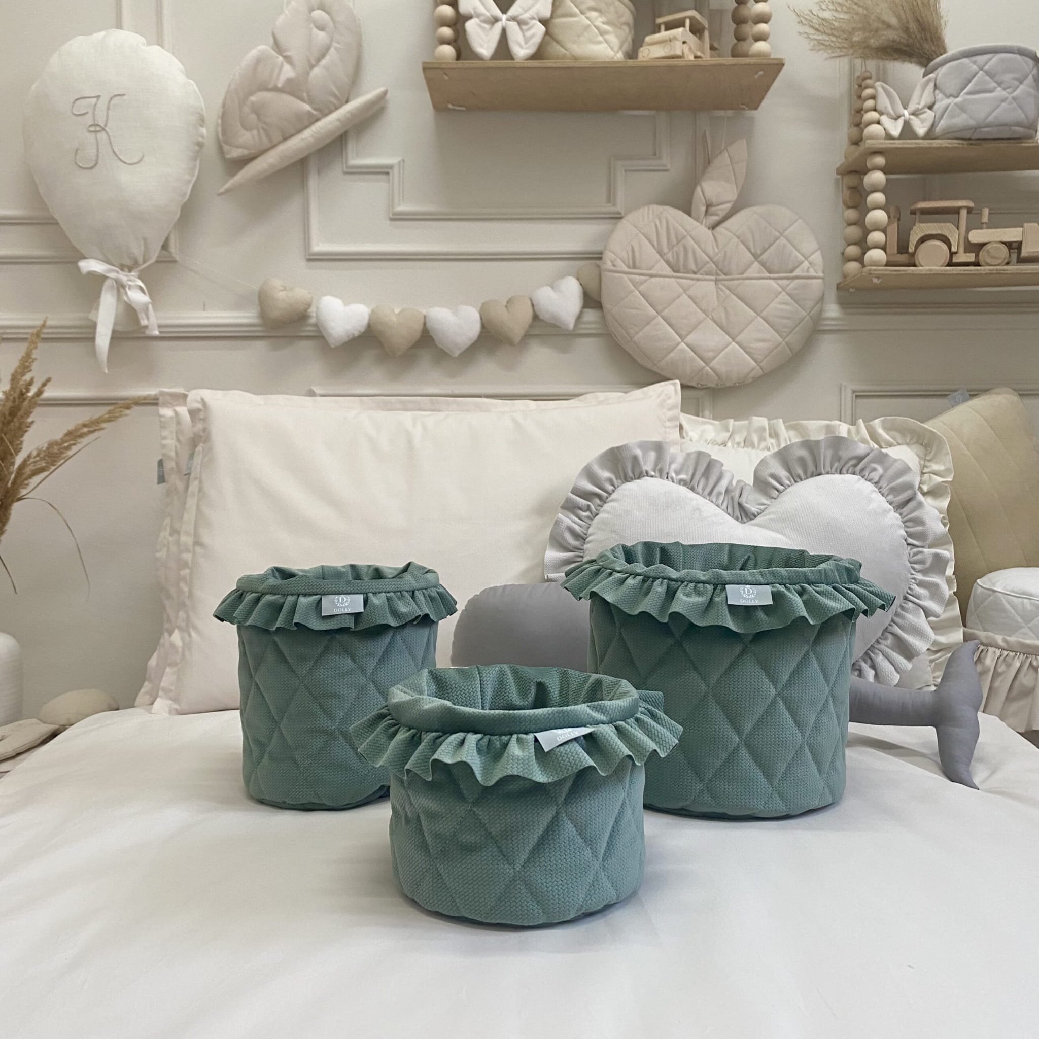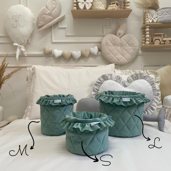 Koszyczek na zabawki aksamitny velvet z falbanką , BUTELKOWA ZIELEŃ
