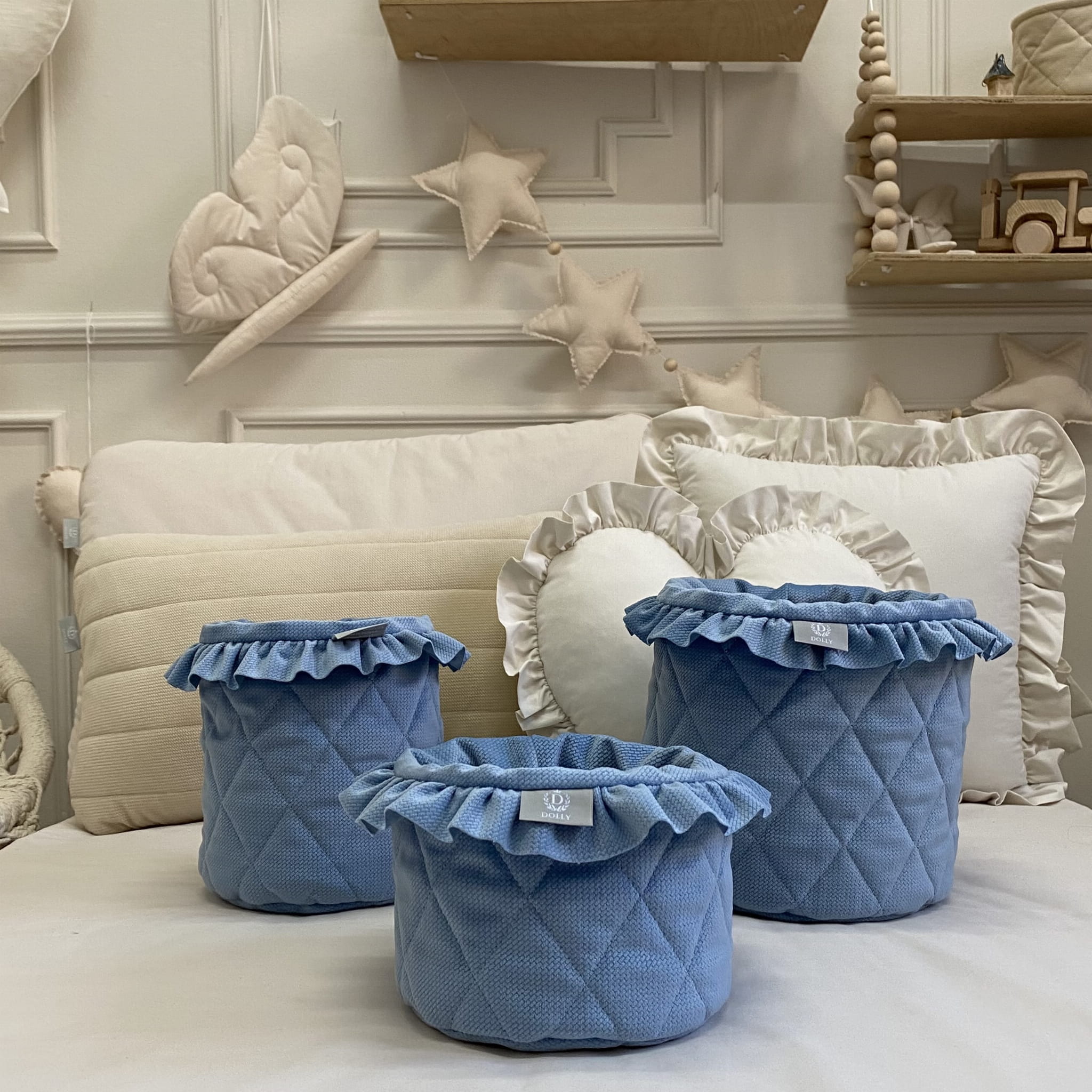 Koszyczek na zabawki aksamitny velvet z falbanką , JEANSOWY NIEBIESKI
