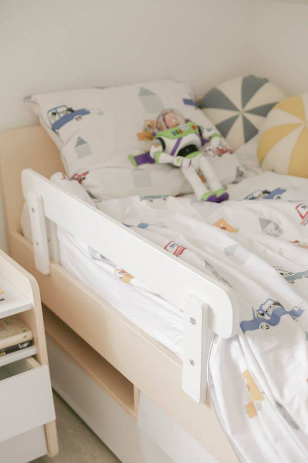 Możliwość dokupienia barierki ochronnej – prosty montaż, bez śladów na ramie łóżka. Idealna dla młodszych dzieci, zmniejsza ryzyko wypadnięcia podczas snu.