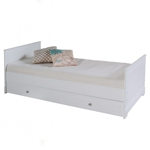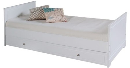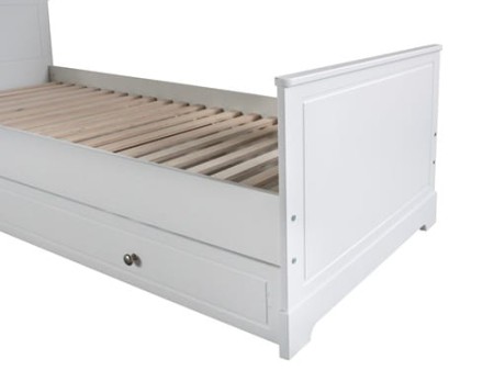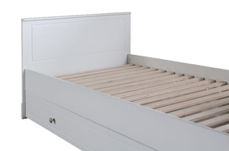 Szuflada z możliwością przełożenia na lewą lub prawą stronę – może służyć jako przestronny schowek lub dodatkowe miejsce do spania (wymagany materac 90x190 cm – opcjonalnie).