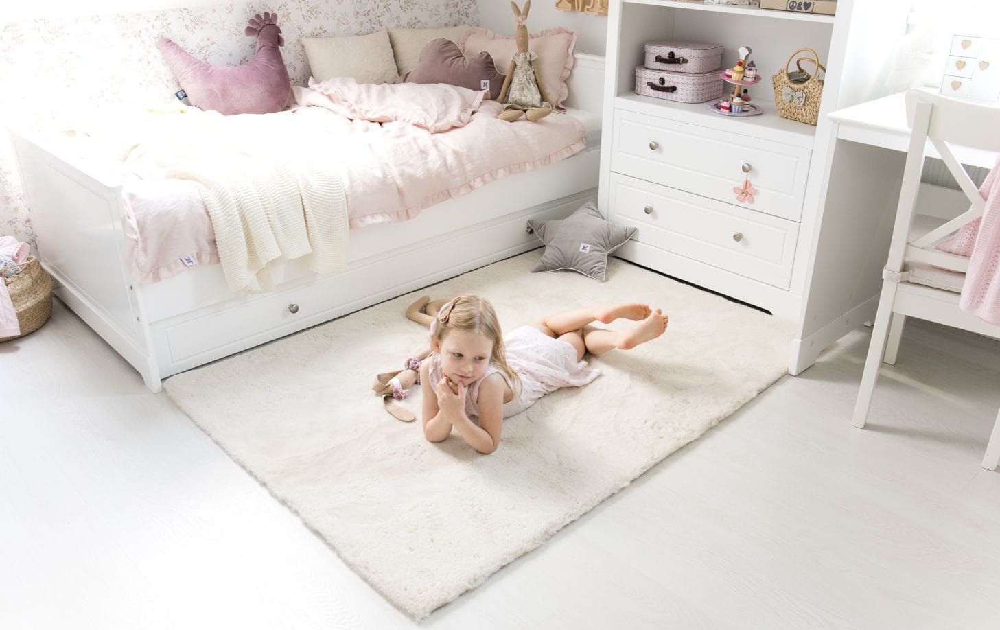 Łóżko dziecięce Marylou marki Bellamy to połączenie klasycznego stylu, subtelnej estetyki i wysokiej funkcjonalności. Utrzymane w jasnej kolorystyce, z delikatnymi liniami i starannie wykonanymi detalami, stanowi wyjątkowy element wyposażenia dziecięcego pokoju.