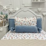- Pościeli z wszytym wypełnieniem – będzie to komplet płaskiej podusi wykończonej falbanką oraz kołderki. W środku znajduje się wypełnienie, które jest wszyte w boki pościeli tak, że środek się nie przemieści a tym bardziej nie zwinie. Włóknina posiada certyfikat jakości Oeko-TexStandard 100.