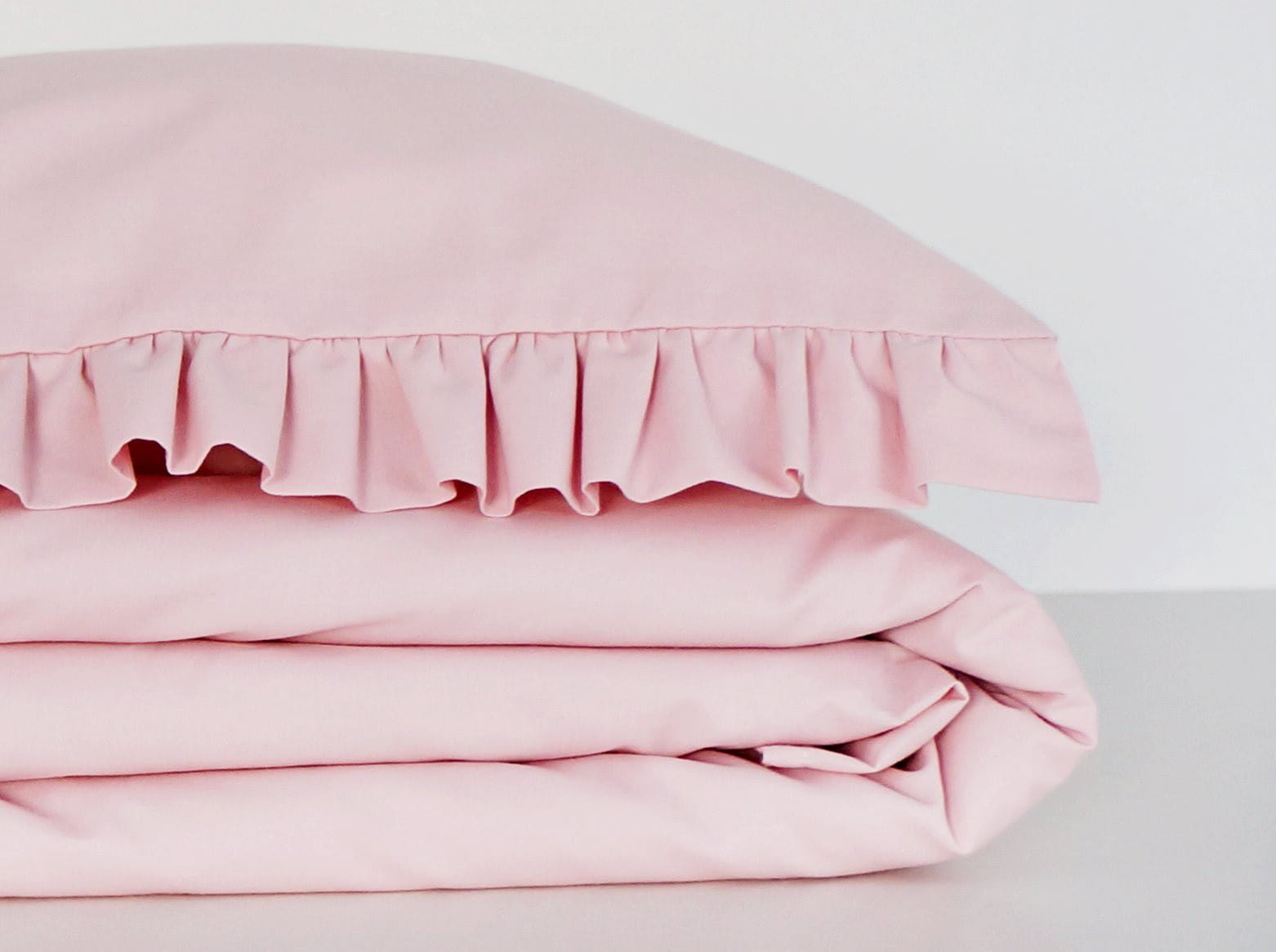 Pościel z falbanką 100x135, pudrowy róż CZYSZCZENIE MAGAZYNU! SUPER CENA!