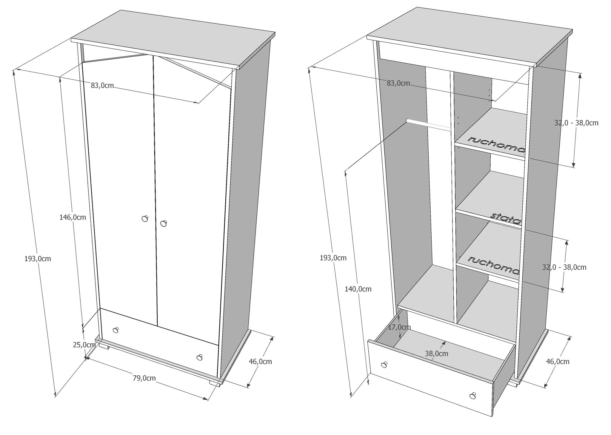 - Wymiary szafy:193/83/46