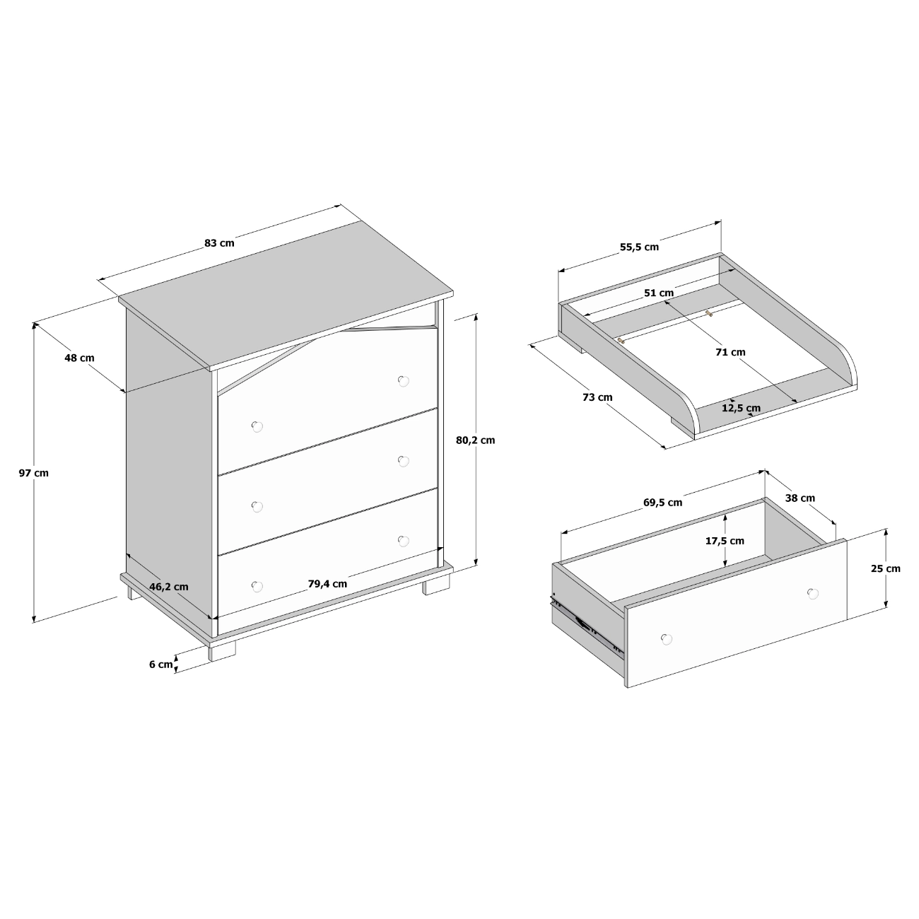 - Wymiary komody:93/83/48 cm