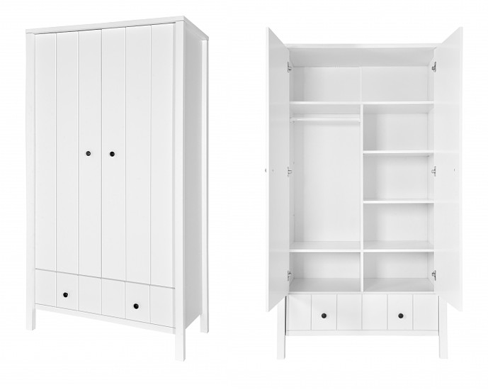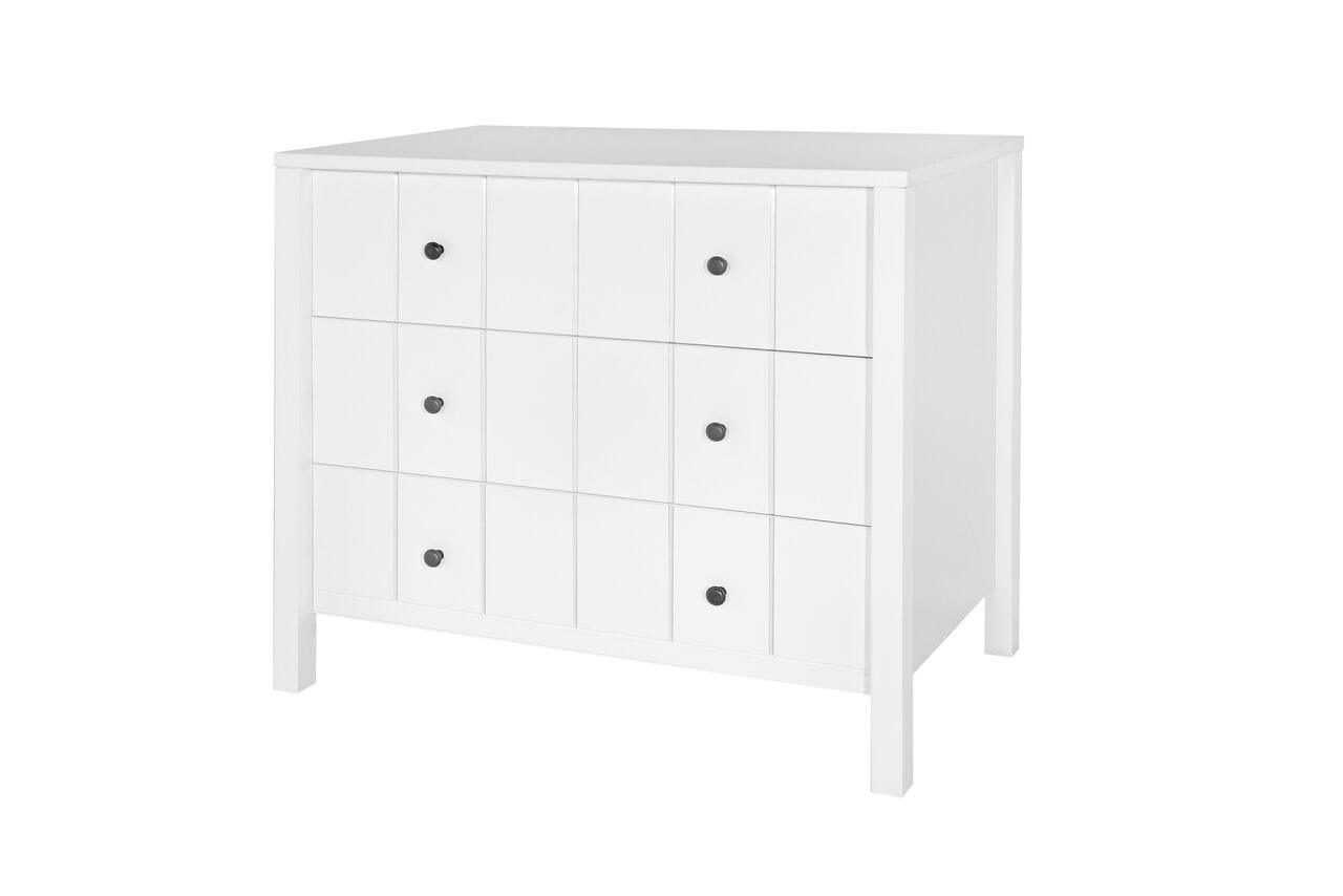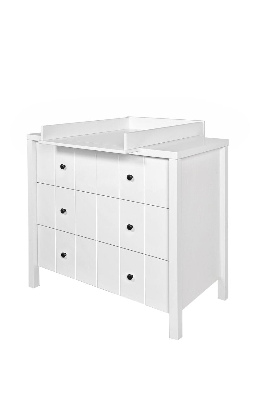 Stylowy zestaw mebli niemowlęcych ALLPIN z frezowanymi frontami i czarnymi gałkami