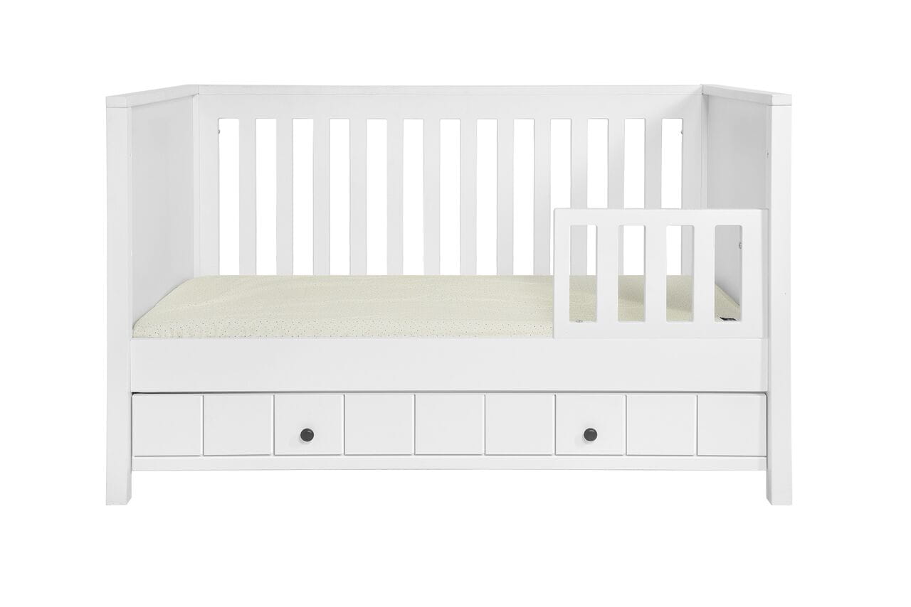 - w zestawie barierka ochronna zabezpieczająca przed wypadaniem po zmianie łóżeczka na tapczanik, barierkę można zamontować po prawej lub lewej stronie łóżeczka