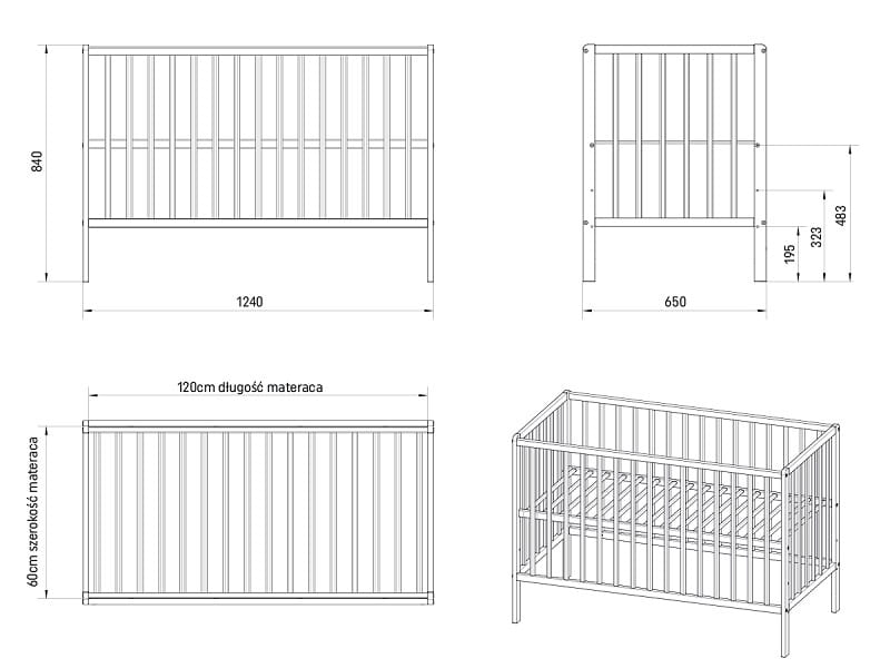 - prezentowane łóżeczko nie zawiera w cenie podstawowej: materaca, barierki, kółek