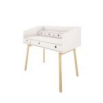 Biurko – Sekretarzyk do pokoju dziecięcego River to eleganckie i funkcjonalne biurko dla dziecka w klasycznym białym kolorze z nogami w odcieniu naturalnego drewna. Połączenie ponadczasowej bieli z ciepłem bukowych nóżek sprawia, że mebel doskonale odnajduje się zarówno w nowoczesnych, jak i bardziej tradycyjnych aranżacjach. To przemyślane miejsce do nauki, rysowania i rozwijania dziecięcych pasji, które jednocześnie pomaga utrzymać porządek w pokoju.