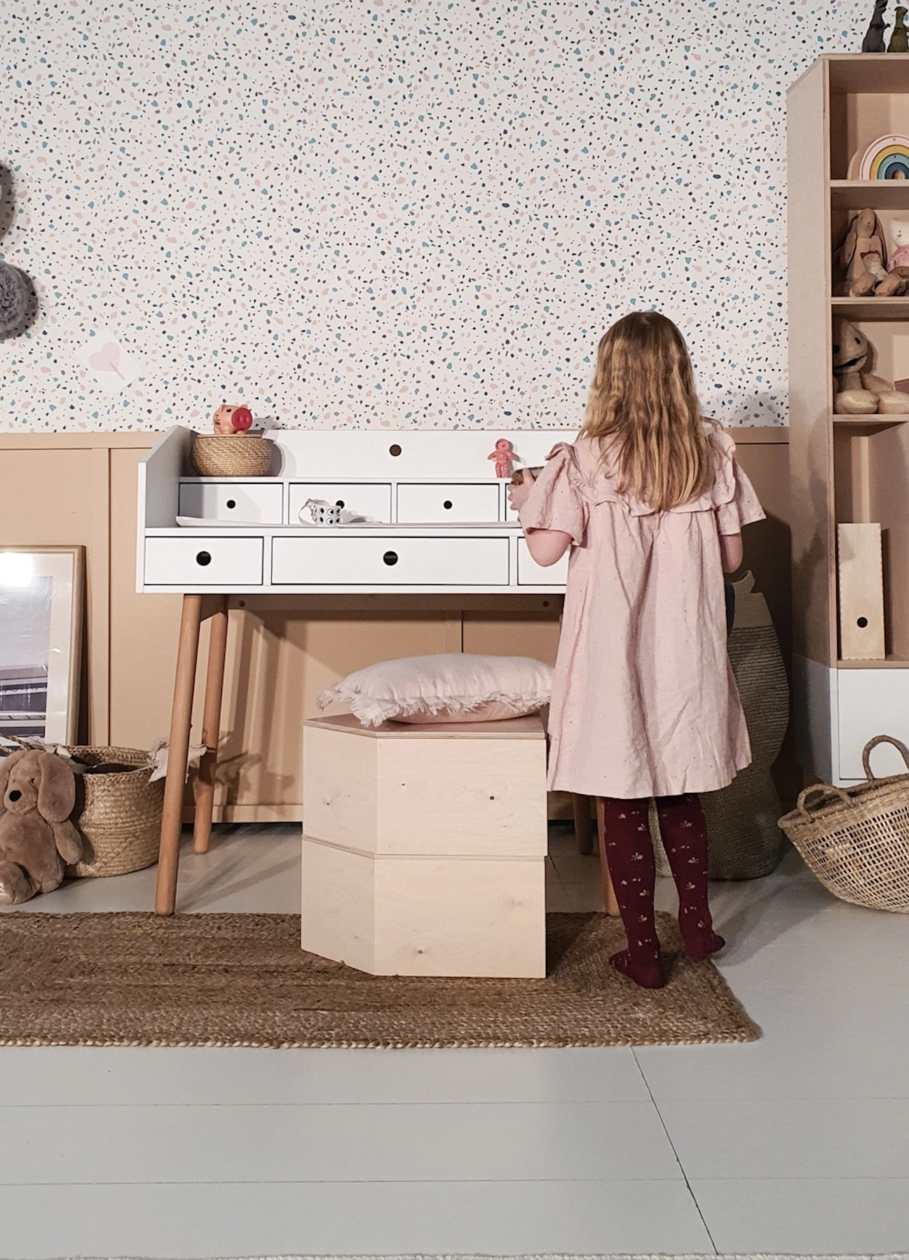 Biurko River zostało zaprojektowane tak, aby maksymalnie wykorzystać dostępną przestrzeń. Siedem pojemnych szuflad ułatwia segregację szkolnych materiałów, a odpowiednia wysokość i proporcje mebla zapewniają komfort użytkowania. Dzięki zamkniętym frontom pokój dziecka pozostaje estetyczny i uporządkowany, nawet przy intensywnym, codziennym użytkowaniu.