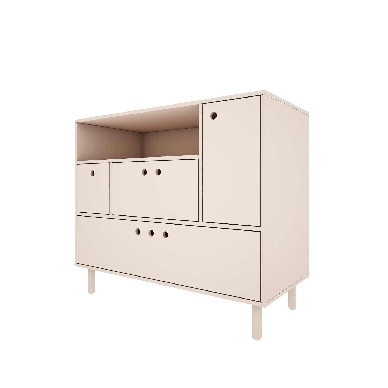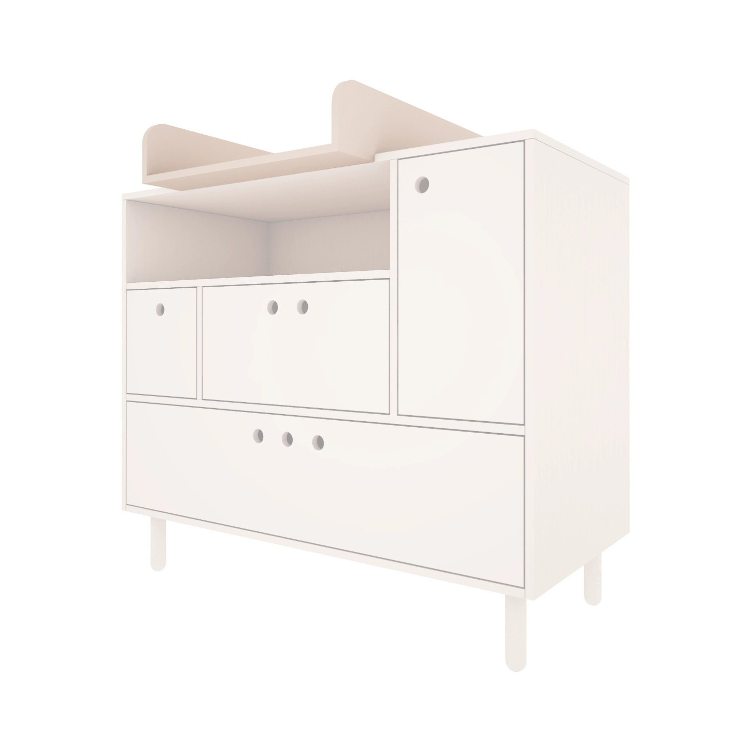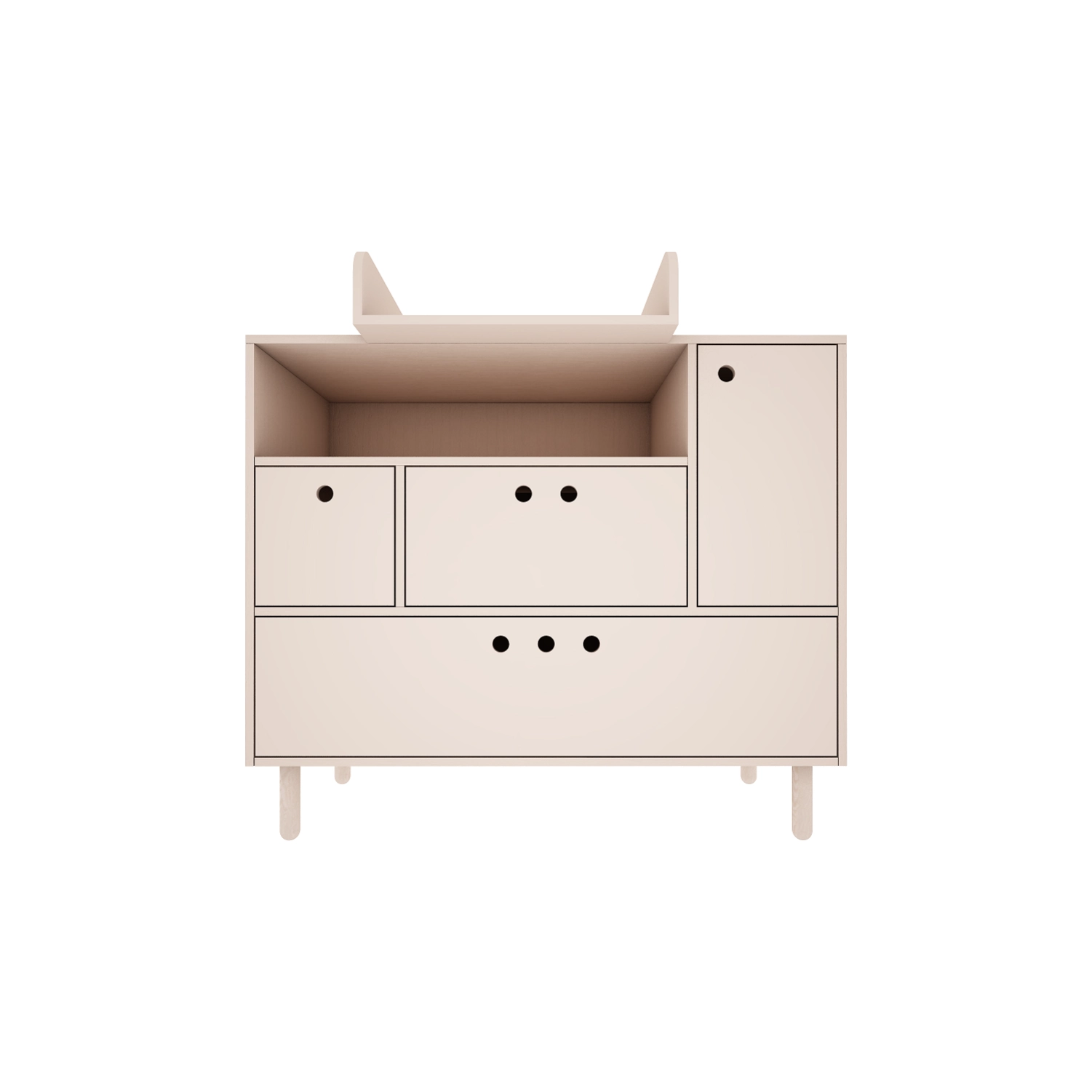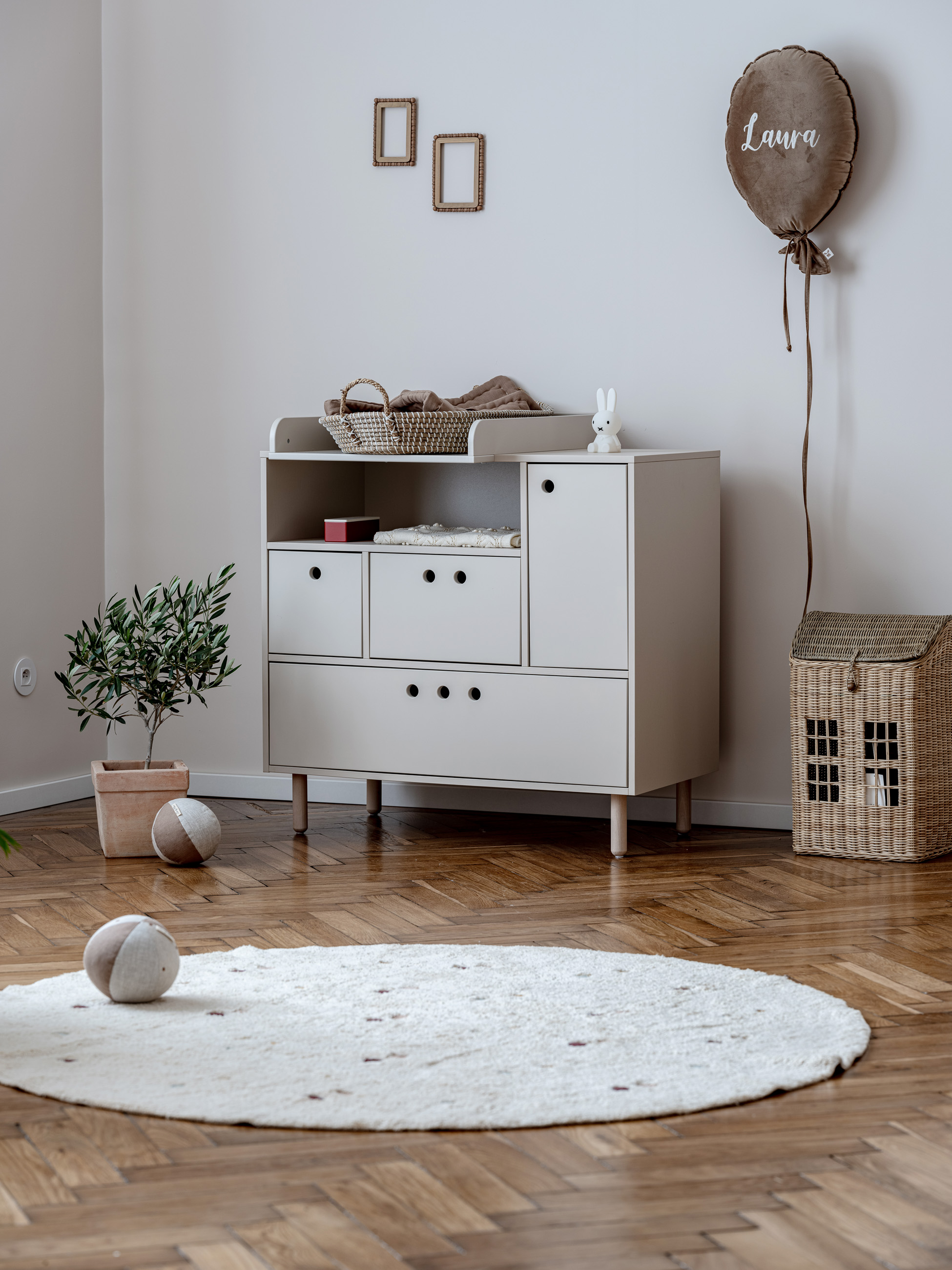 Komoda została zaprojektowana tak, aby ułatwić codzienną organizację. Dzięki różnorodnym przestrzeniom do przechowywania z łatwością uporządkujesz ubrania, pieluszki, kosmetyki czy zabawki.