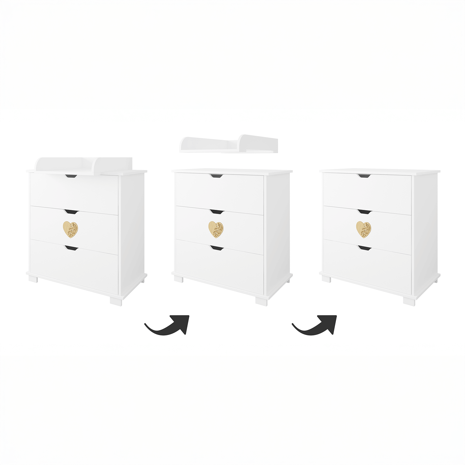 Komoda z szufladami LOVE - biała z dekoracyjnym serduszkiem