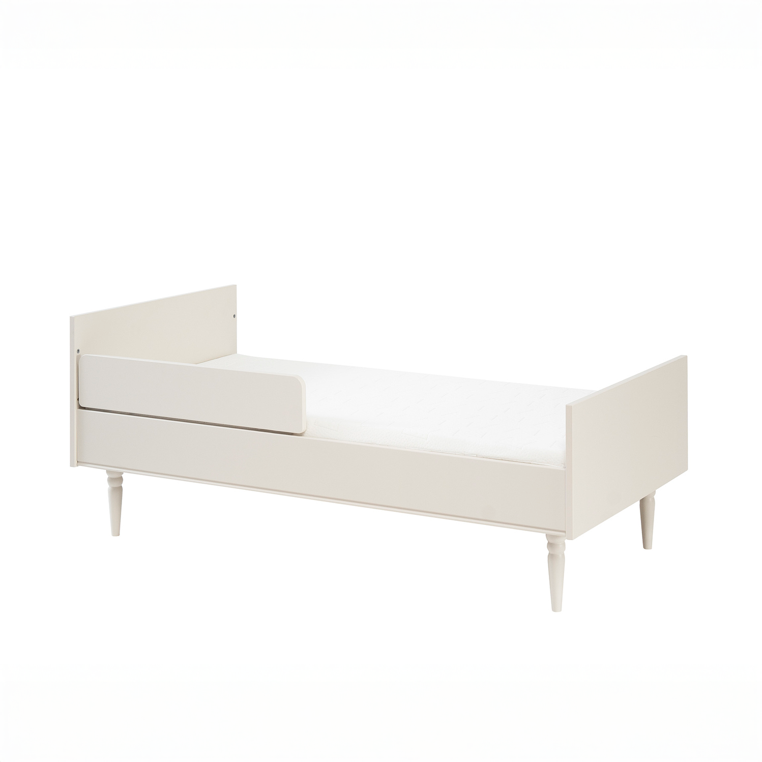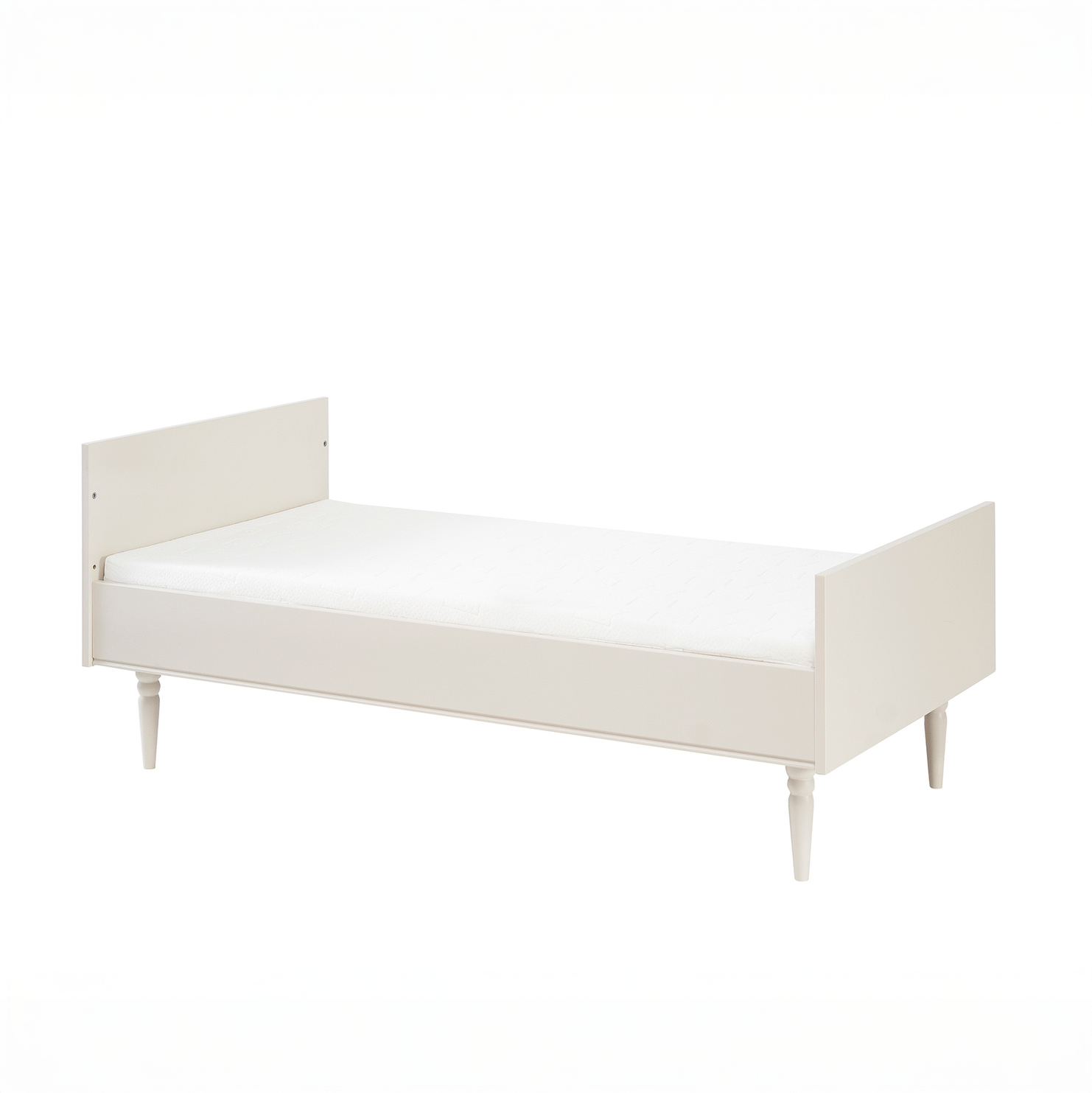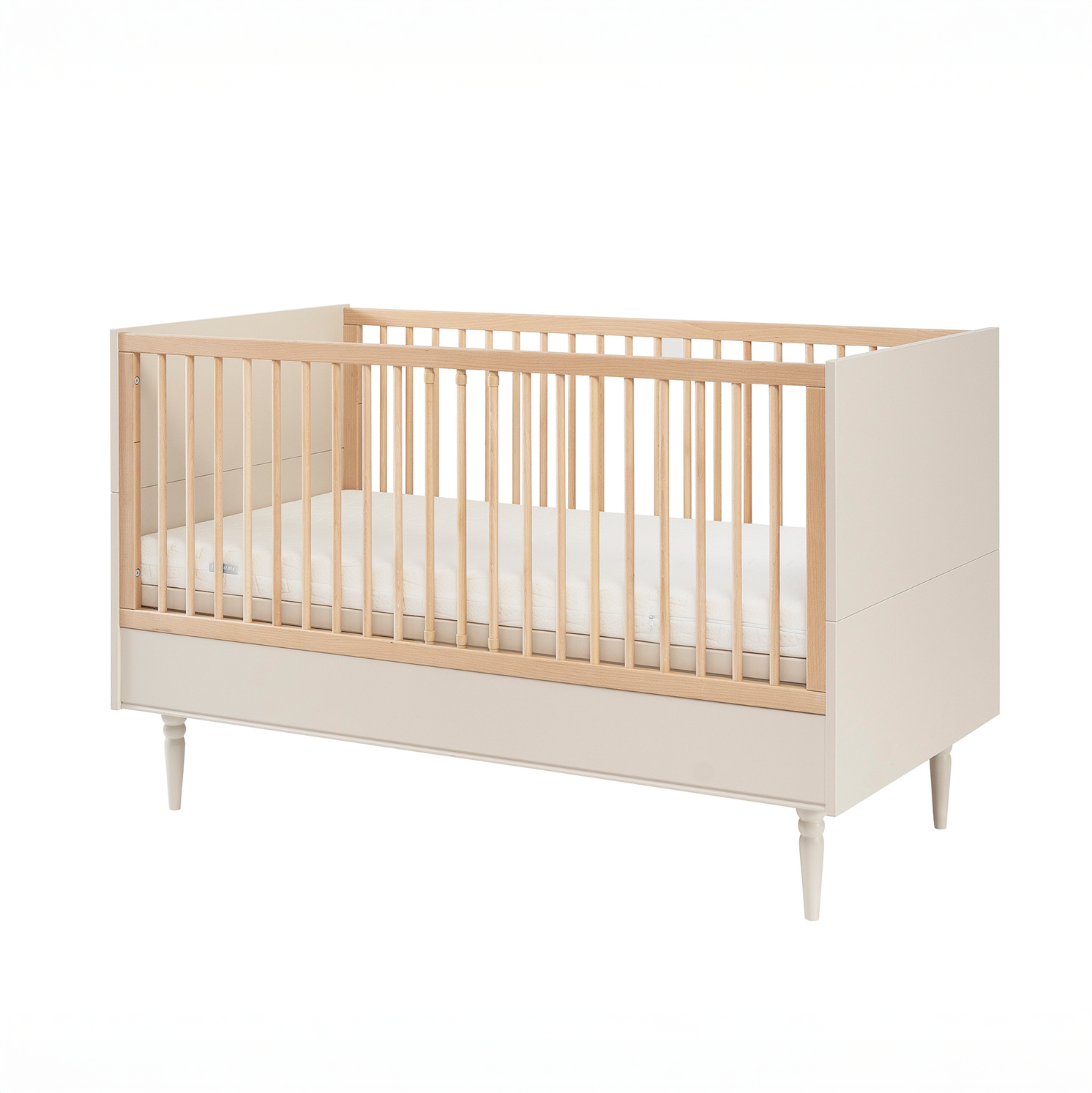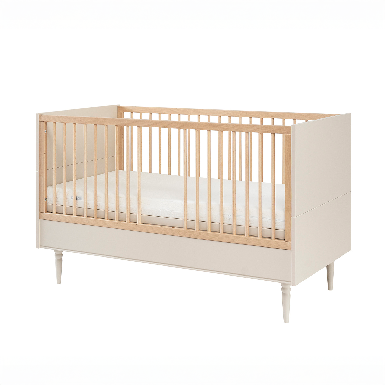 Łóżeczko-tapczanik z kolekcji Petite to połączenie eleganckiego stylu, bezpieczeństwa i praktycznych rozwiązań, które rosną razem z dzieckiem. Dzięki możliwości przekształcenia w tapczanik, mebel doskonale sprawdzi się nie tylko w pierwszych miesiącach życia maluszka, ale także w wieku przedszkolnym. Szampański odcień, subtelne linie i naturalne drewniane nóżki tworzą harmonijną całość, która nada wnętrzu ciepła i spokoju.