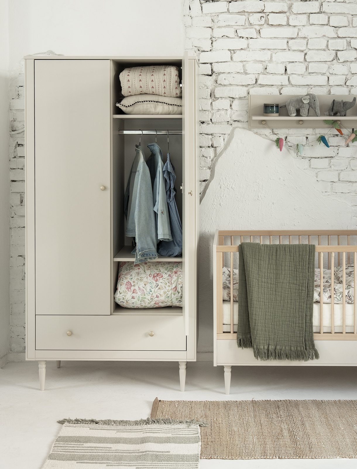 Zaprojektuj spójną i przytulną przestrzeń dla swojego dziecka, dobierając do łóżeczka pozostałe meble z kolekcji Petite – komody, szafy i regały utrzymane w tej samej eleganckiej stylistyce.