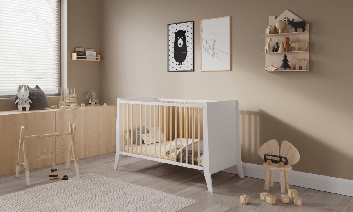 Główna konstrukcja łóżeczka odpowiedzialna za nośność wykonana w 100% z drewna: dno, nogi i boki łóżeczka.