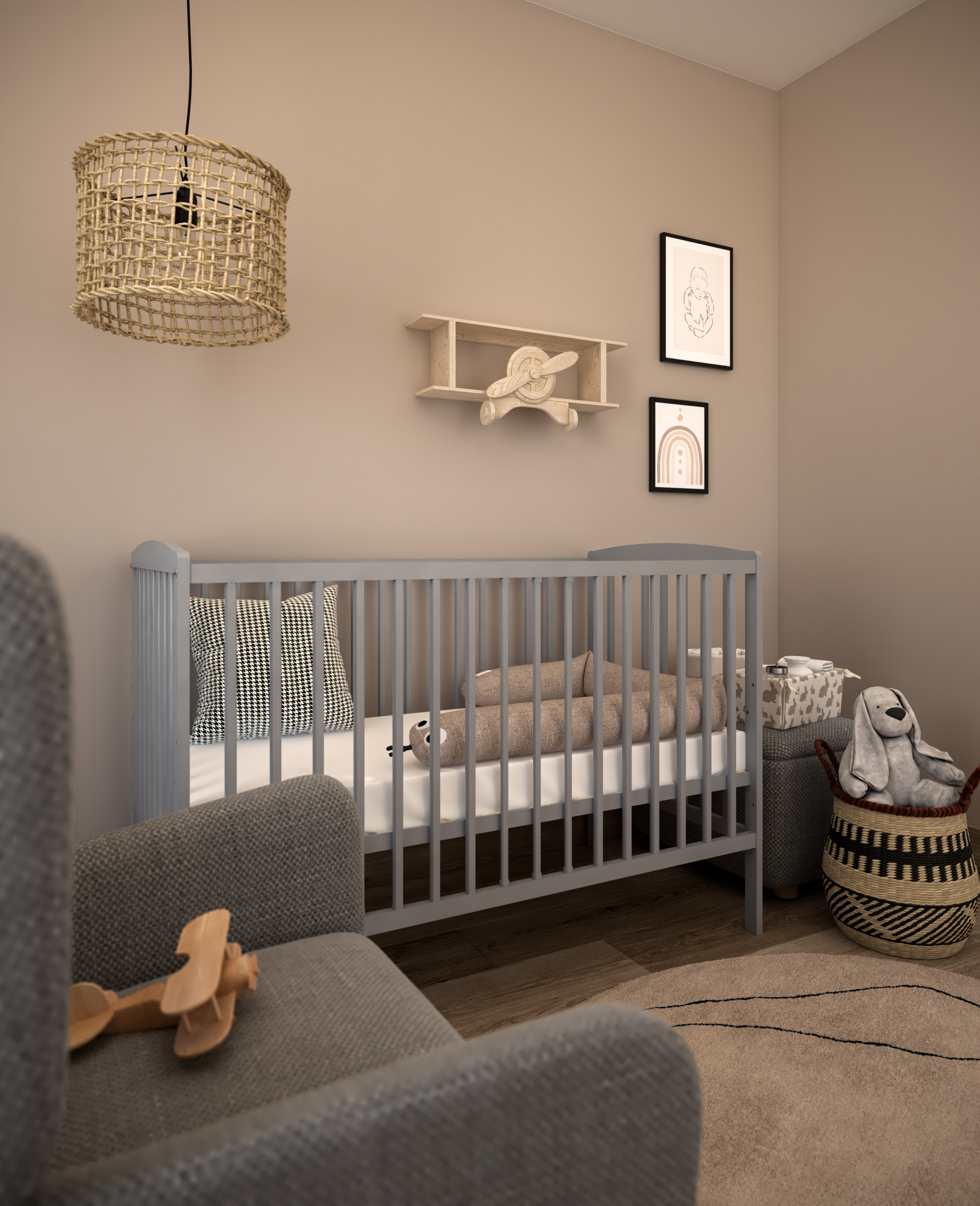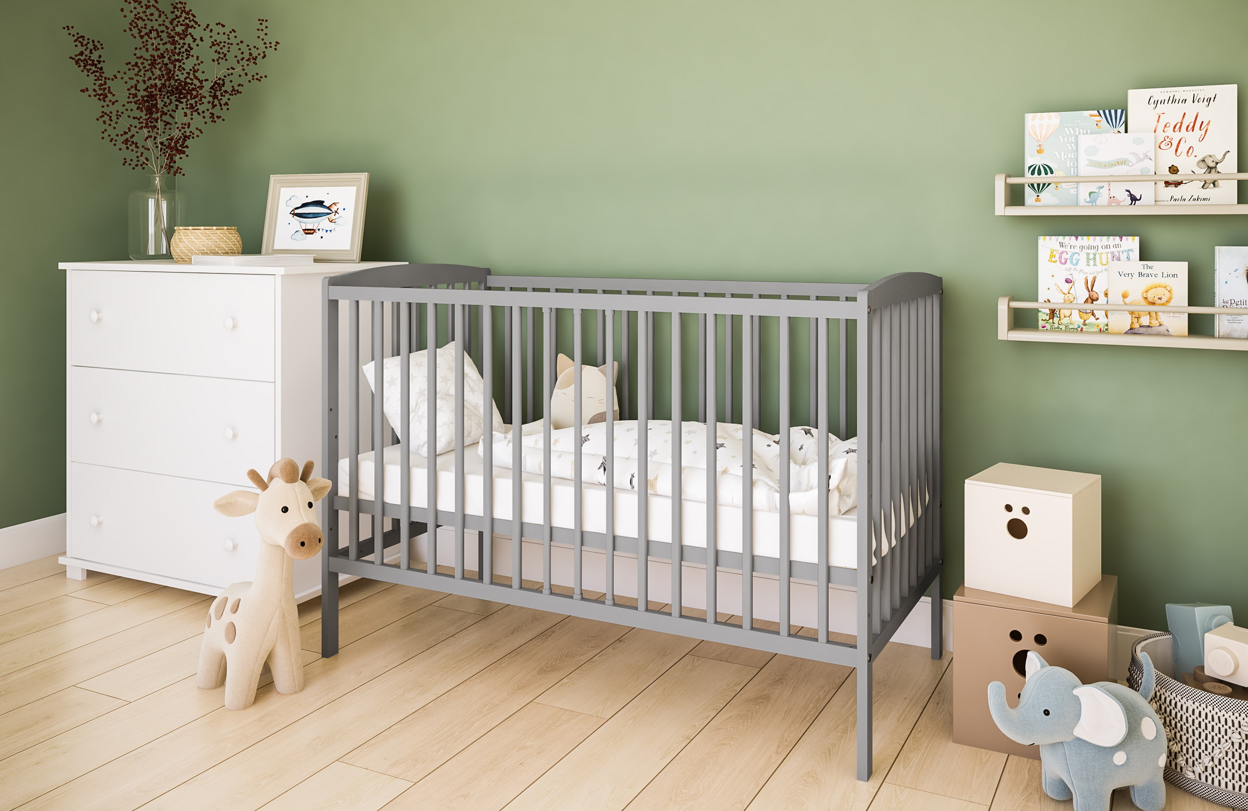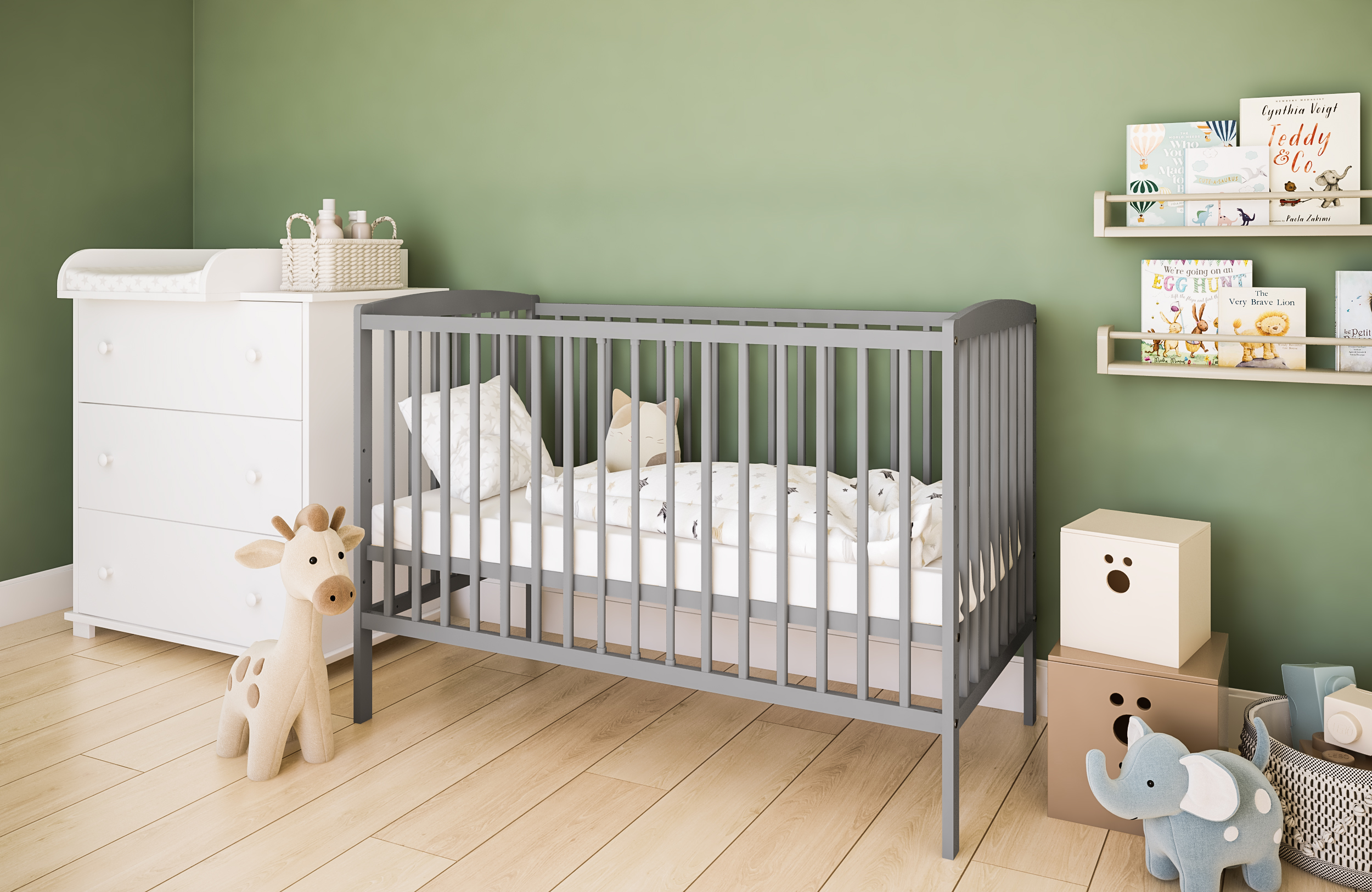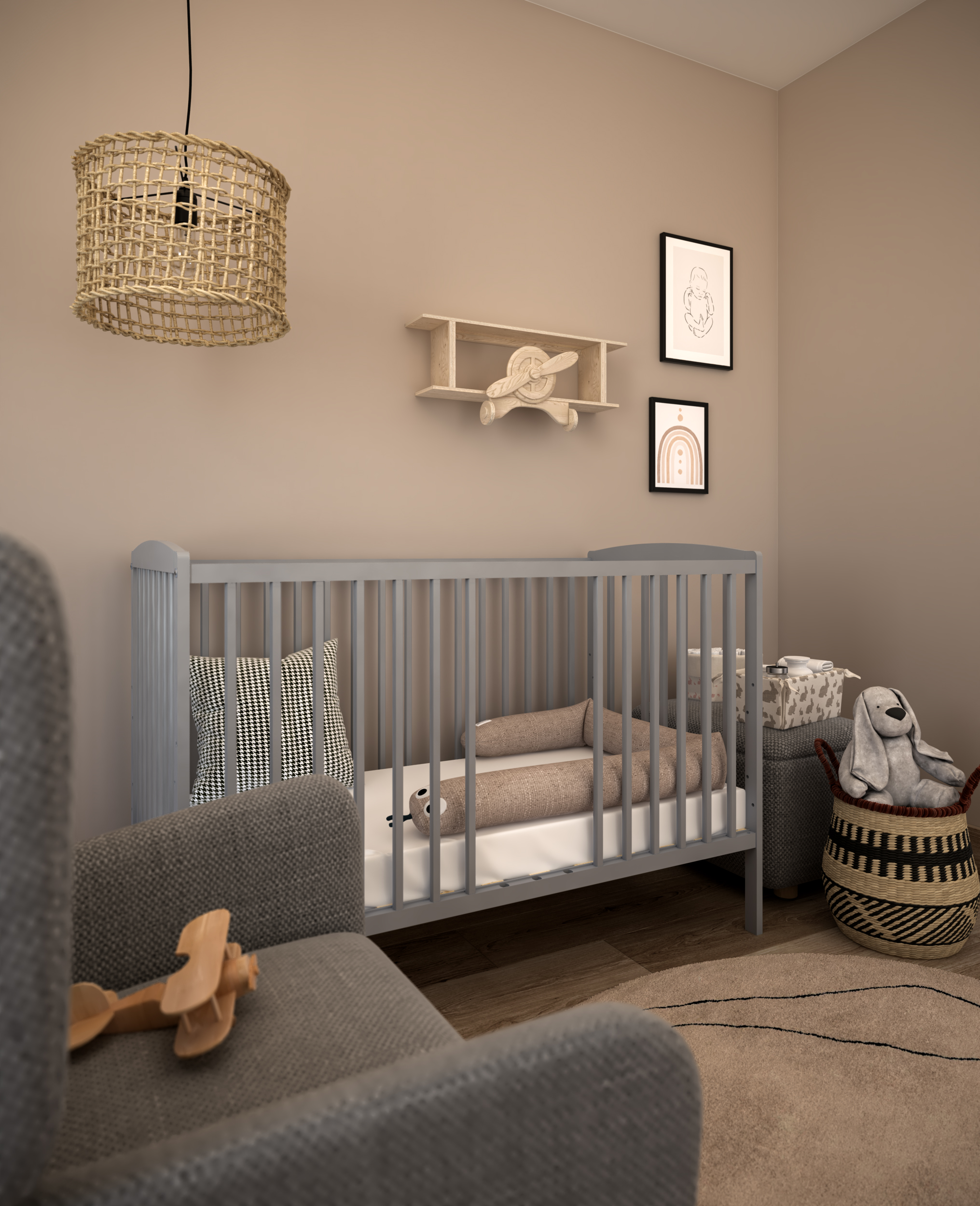 Łóżeczko BASIC w kolorze szarym lub naturalnym (sosna) doskonale komponuje się z komodą, szafą, regałem oraz innymi meblami z tej samej kolekcji. Dzięki spójnej stylistyce można stworzyć uporządkowaną i harmonijną przestrzeń dopasowaną do potrzeb rosnącego dziecka. Wszystkie meble z kolekcji BASIC znajdziesz TUTAJ.