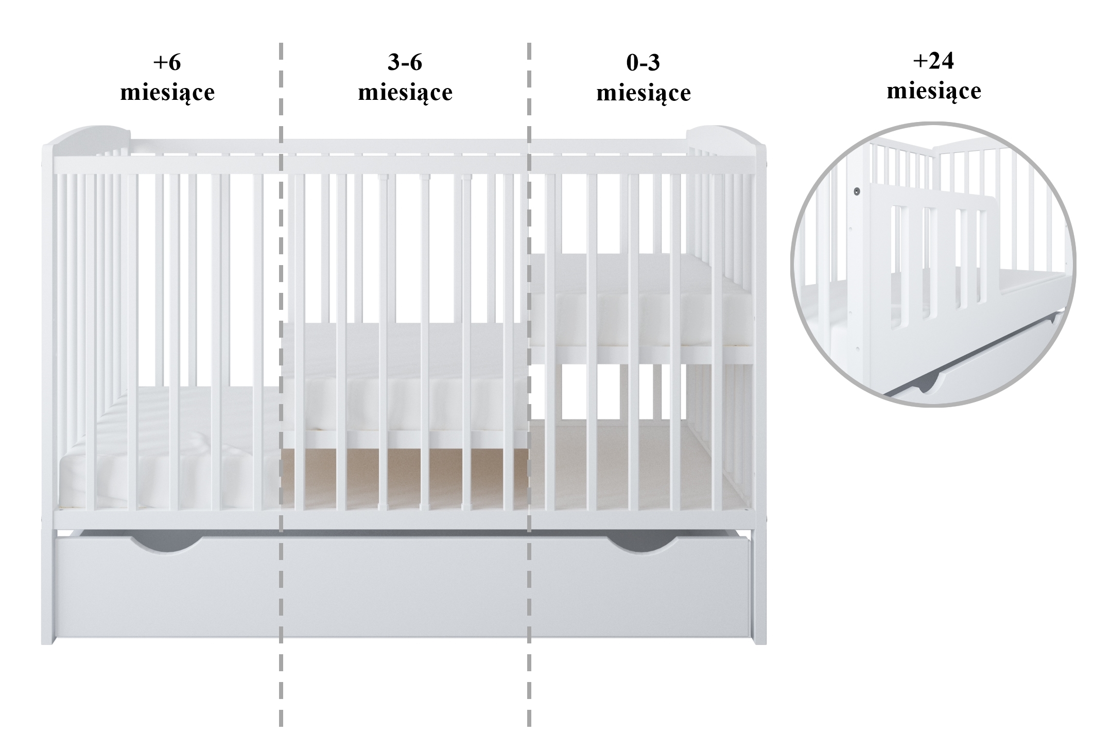 Nie. Kolor biały, szary oraz naturalny (sosna) funkcjonują jako osobne produkty w sklepie. Konstrukcja i wymiary łóżeczka pozostają takie same. Wszystkie meble z kolekcji znajdziesz TUTAJ.
