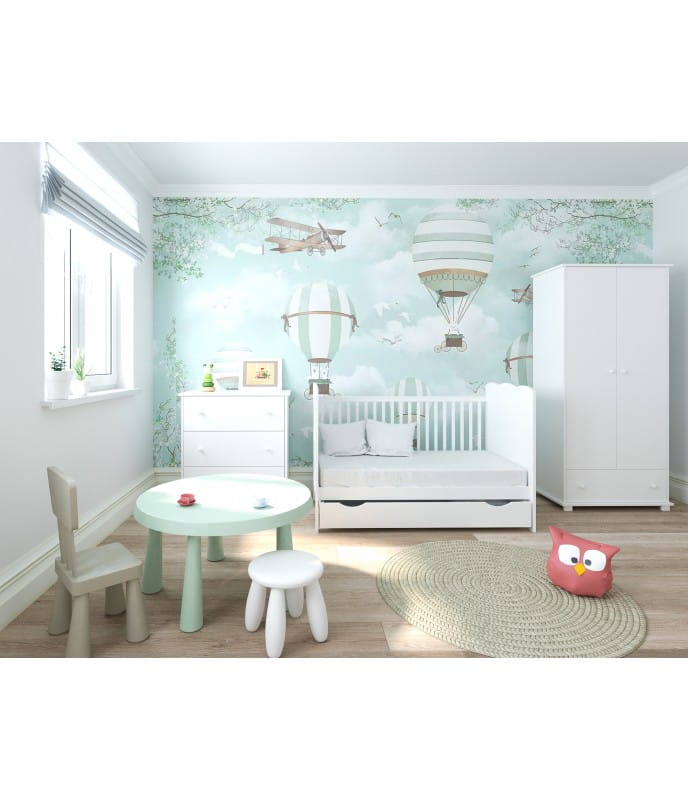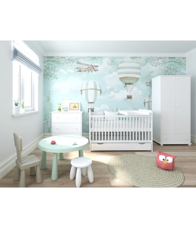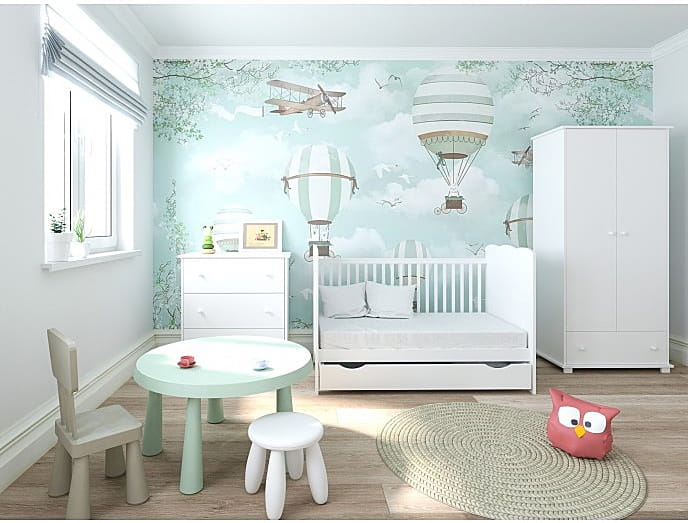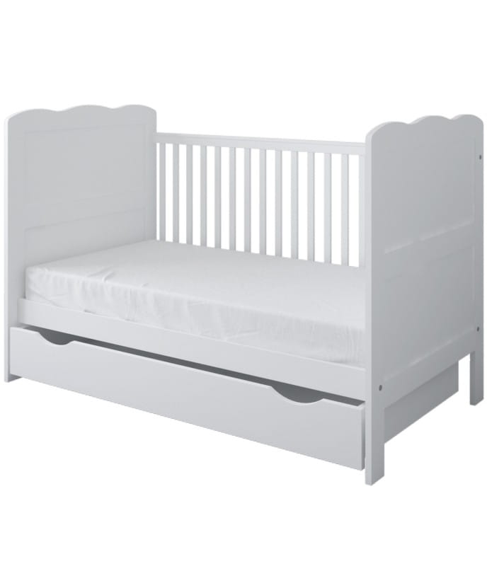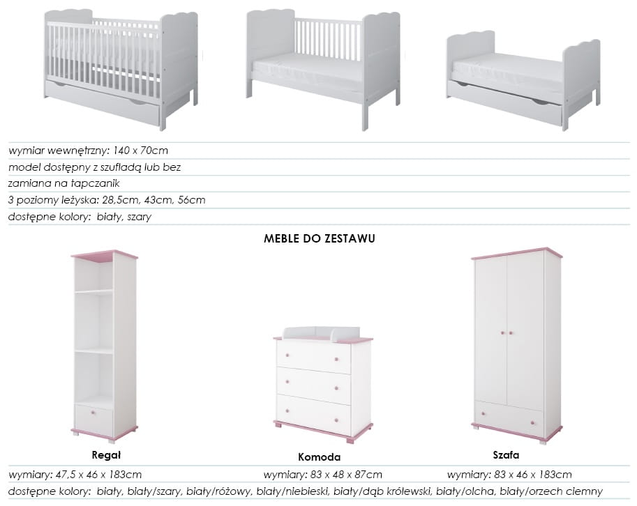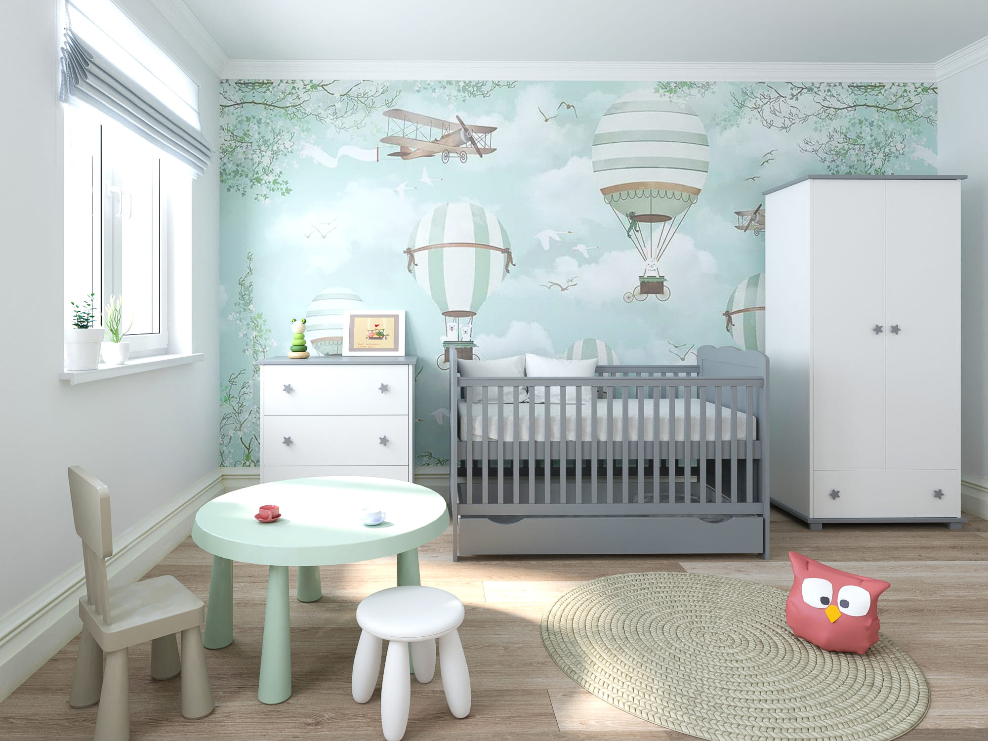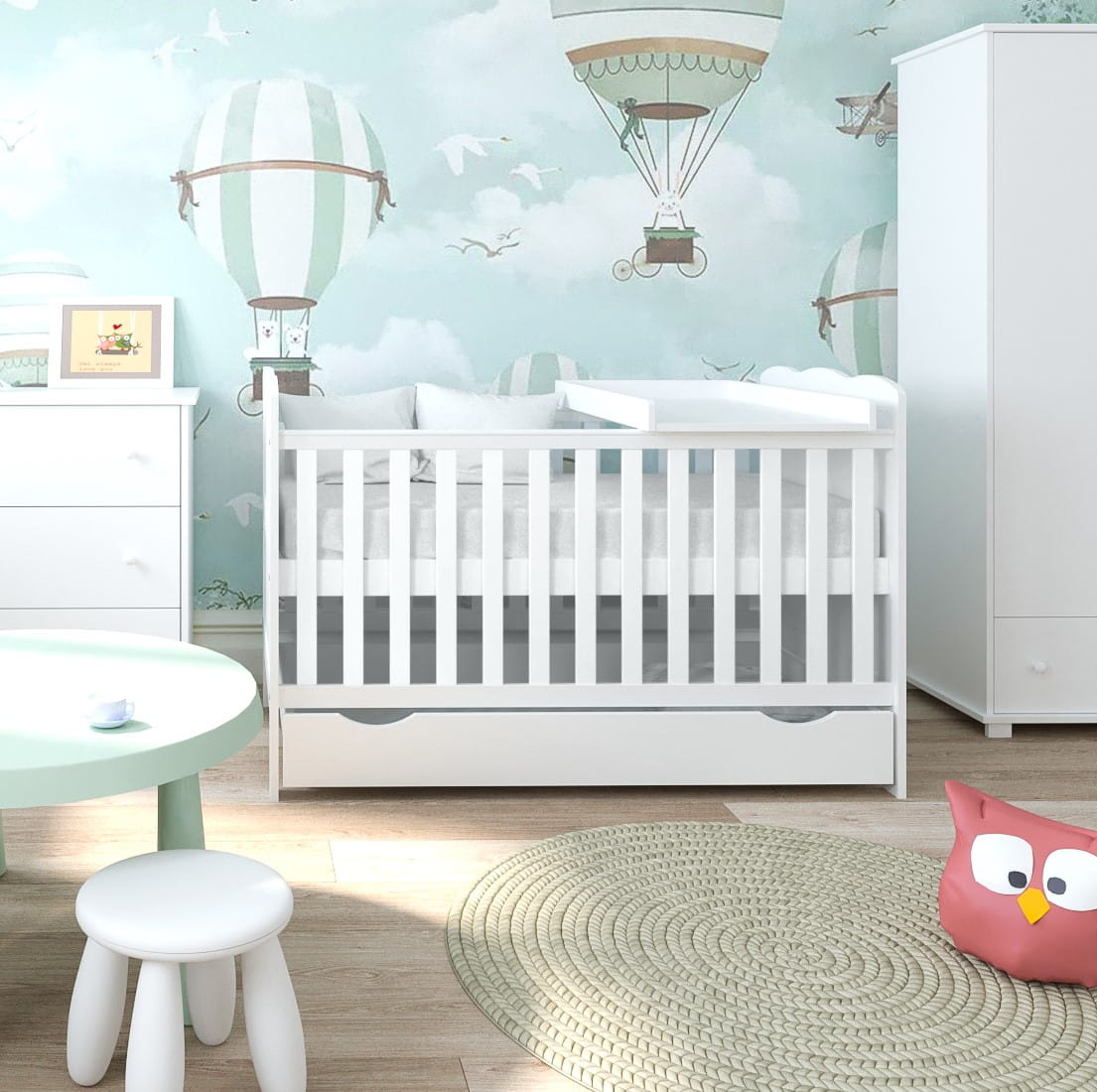 Biała lub szara kolorystyka łóżeczka jest uniwersalna i pasuje do różnorodnych aranżacji pokojów dziecięcych.