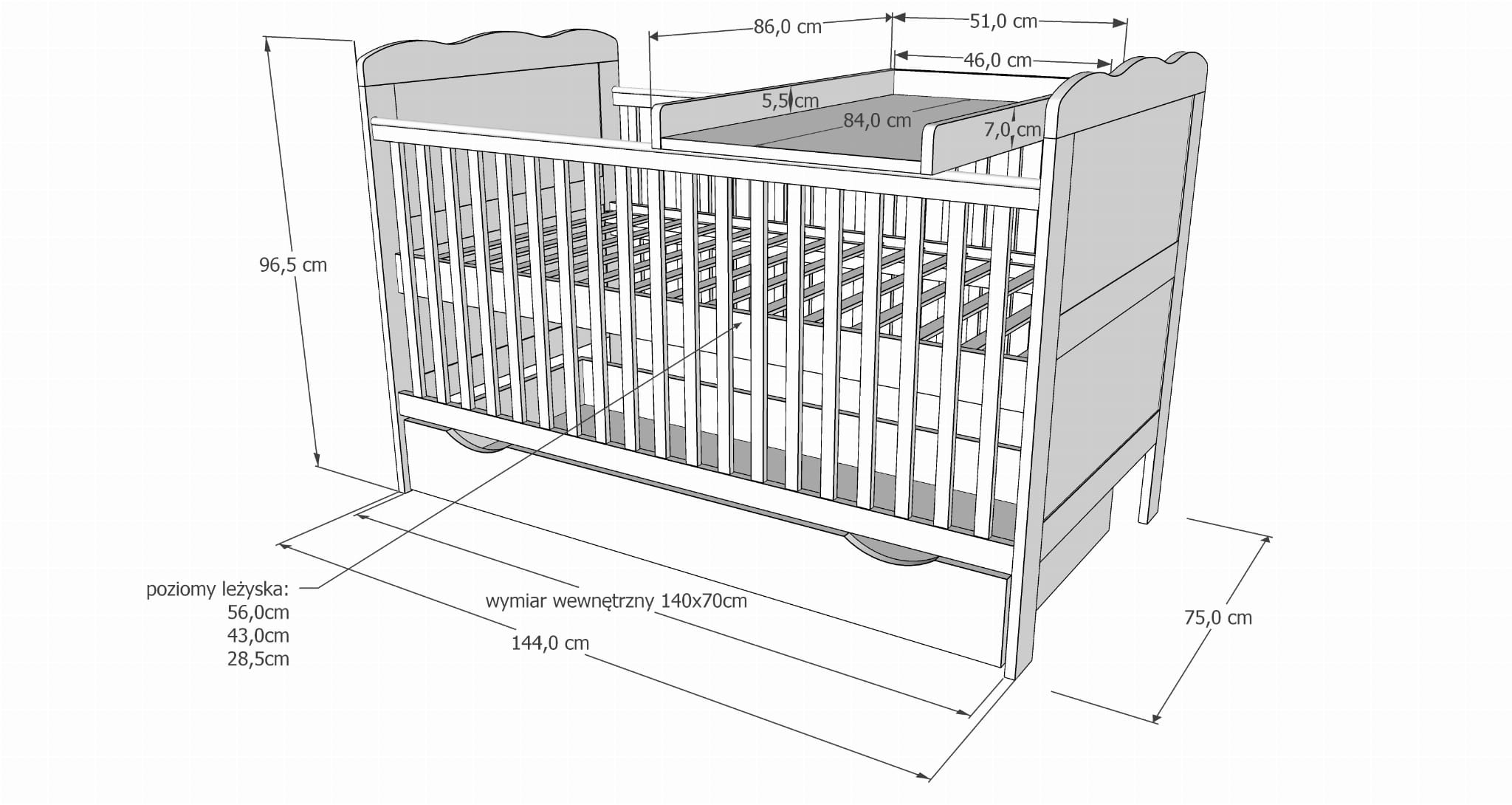 Trzystopniowa regulacja wysokości to funkcjonalność, która dostosowuje się do rosnących potrzeb dziecka, zapewniając mu bezpieczeństwo na każdym etapie rozwoju. Stelaż wykonany ze sklejki liściastej zapewnia trwałość i stabilność konstrukcji, co jest kluczowe z punktu widzenia bezpieczeństwa malucha.