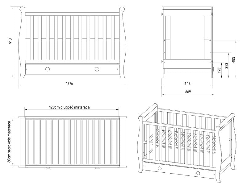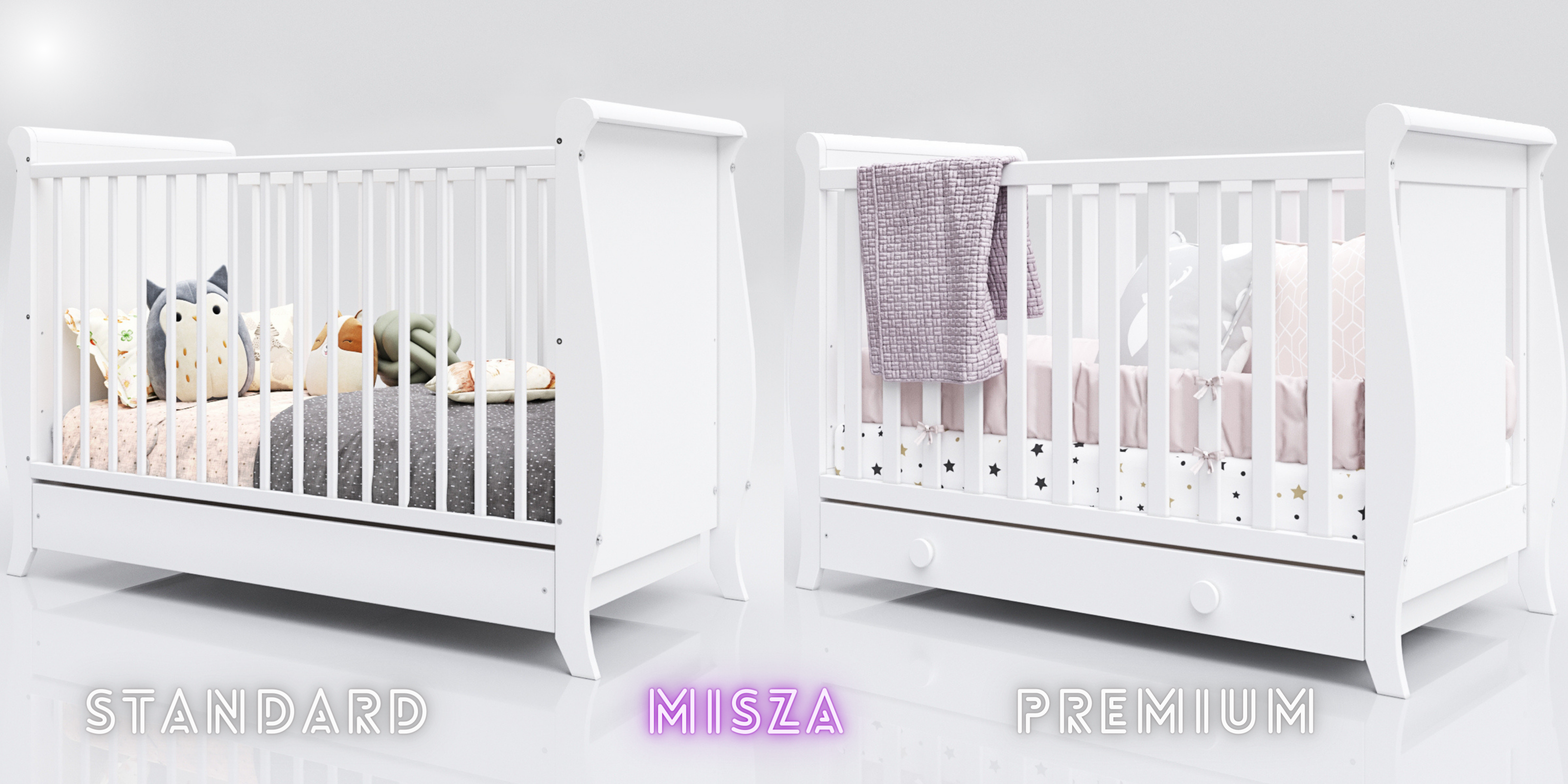 Łóżeczko dziecięce Misza – wersja Standard i Premium (bez szuflady)