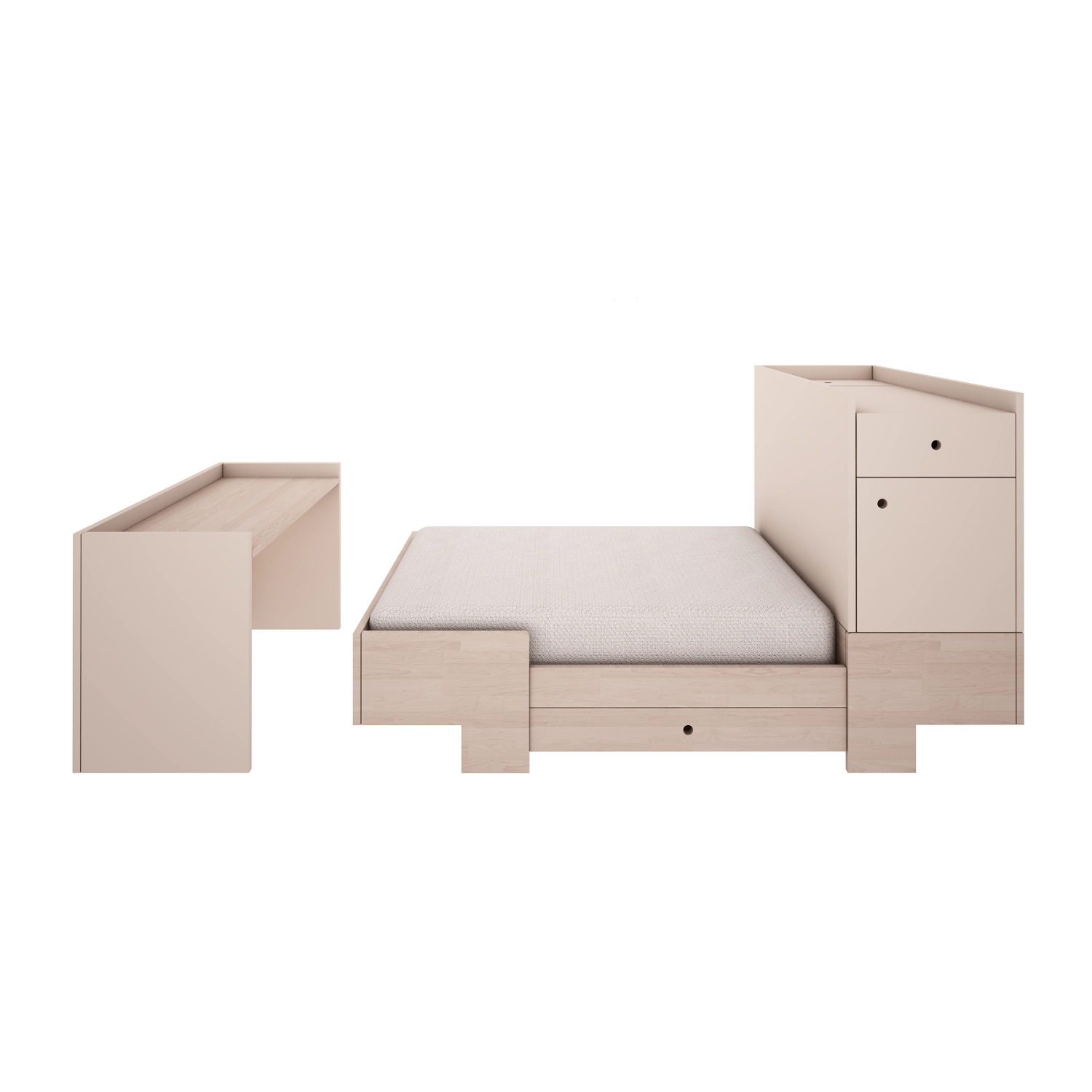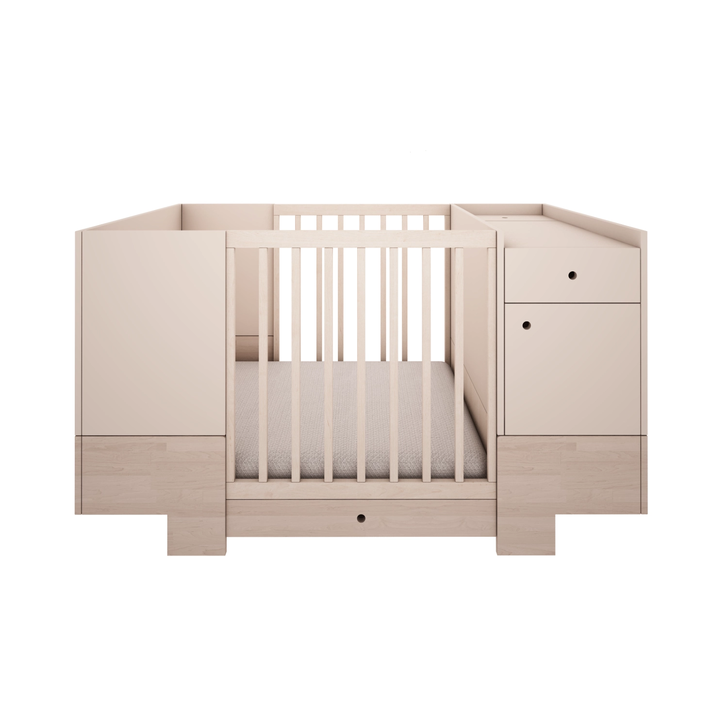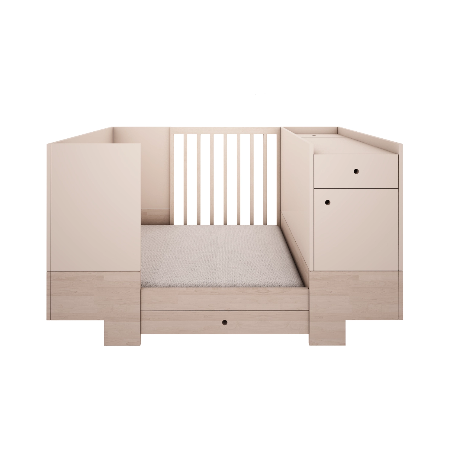 Łóżeczko wielofunkcyjne SmartBed do pokoju dziecięcego - Piaskowy Beż + Buk