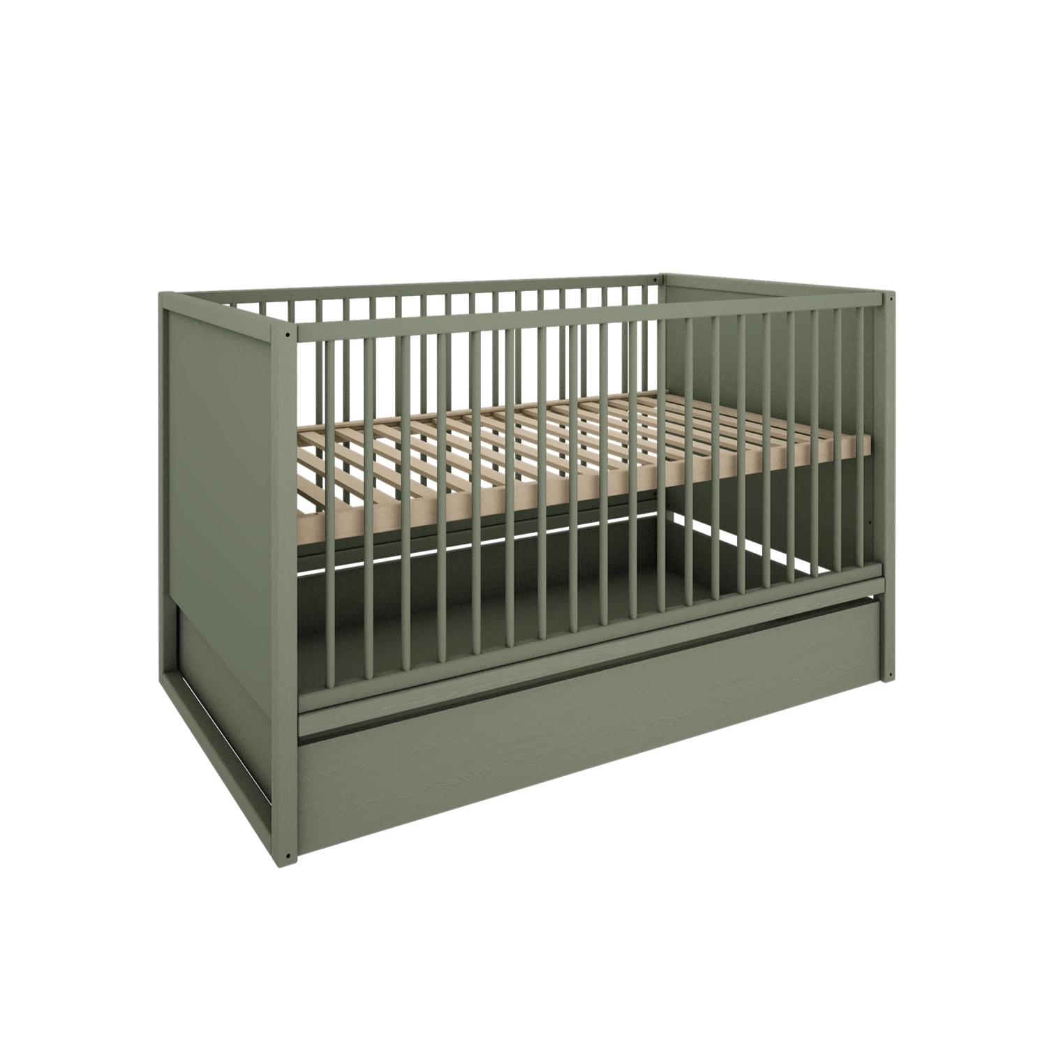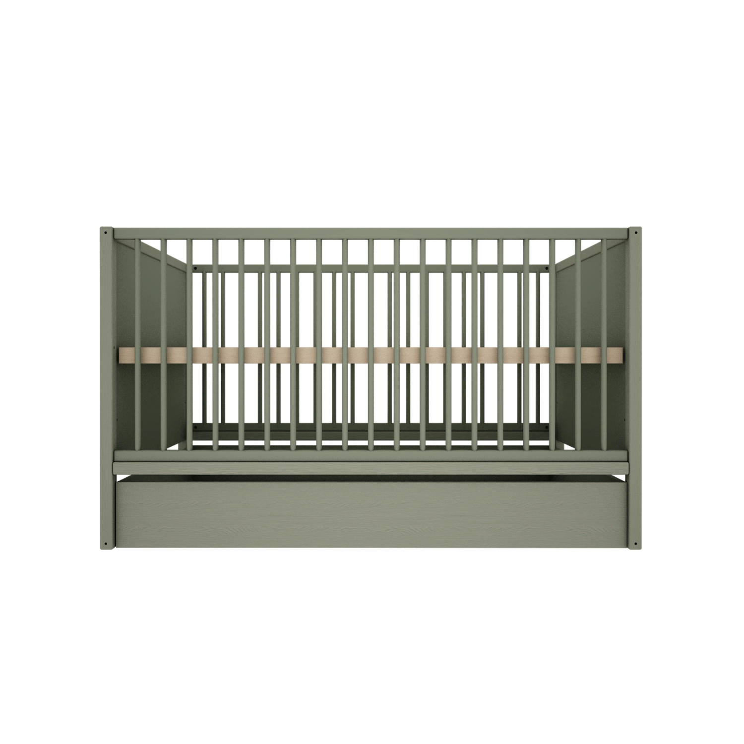 Łóżeczko można rozbudować o praktyczną szufladę montowaną pod konstrukcją. To wygodne rozwiązanie pozwala lepiej wykorzystać przestrzeń i utrzymać porządek w pokoju dziecka.