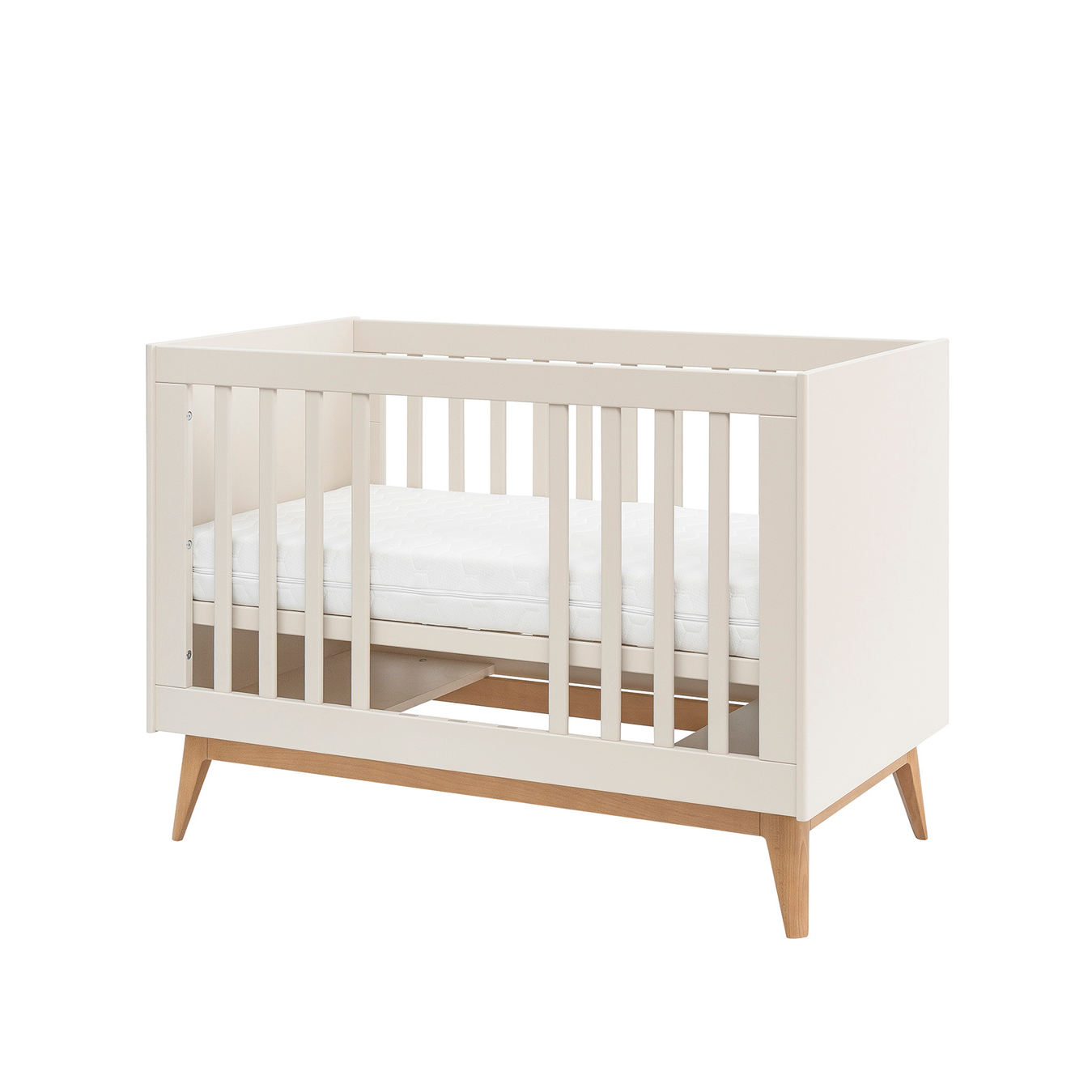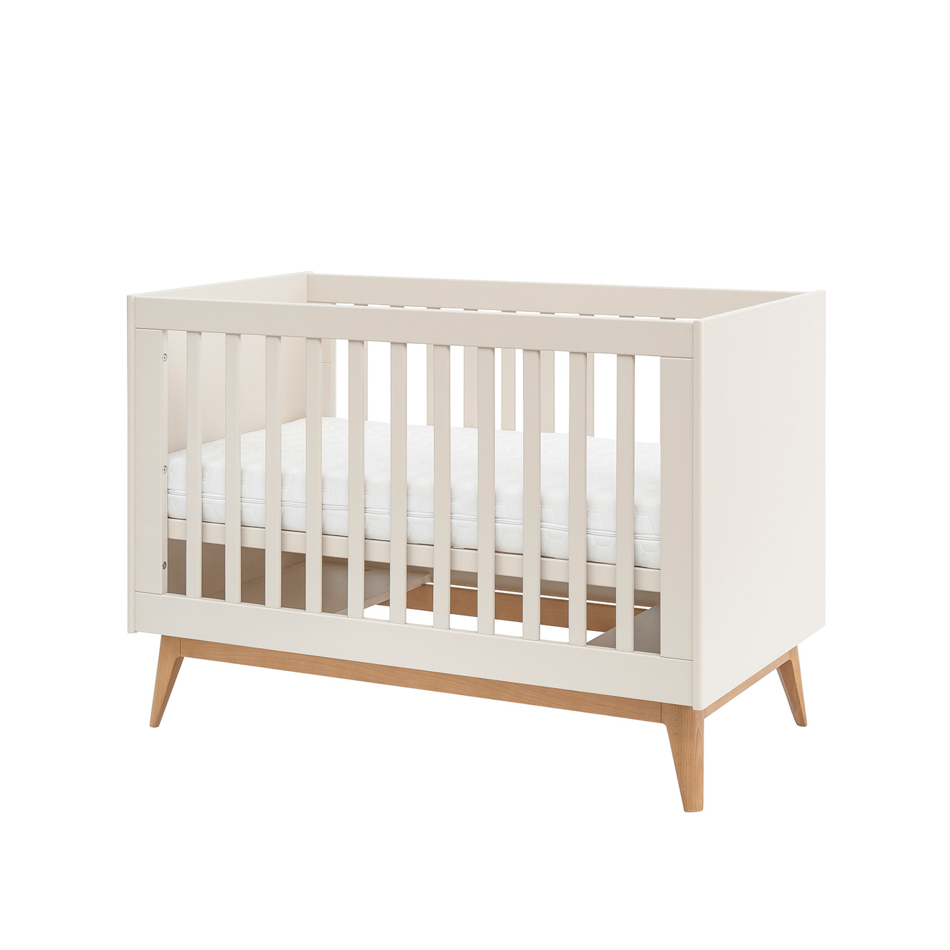 Łóżeczko SETH wyróżnia się nowoczesnym minimalizmem oraz subtelnym stylem. Gładkie fronty, delikatnie zaokrąglone krawędzie i drewniane nóżki sprawiają, że mebel prezentuje się lekko i elegancko. Szampański kolor wprowadza do wnętrza ciepło i spokój, doskonale komponując się z innymi elementami kolekcji SETH.