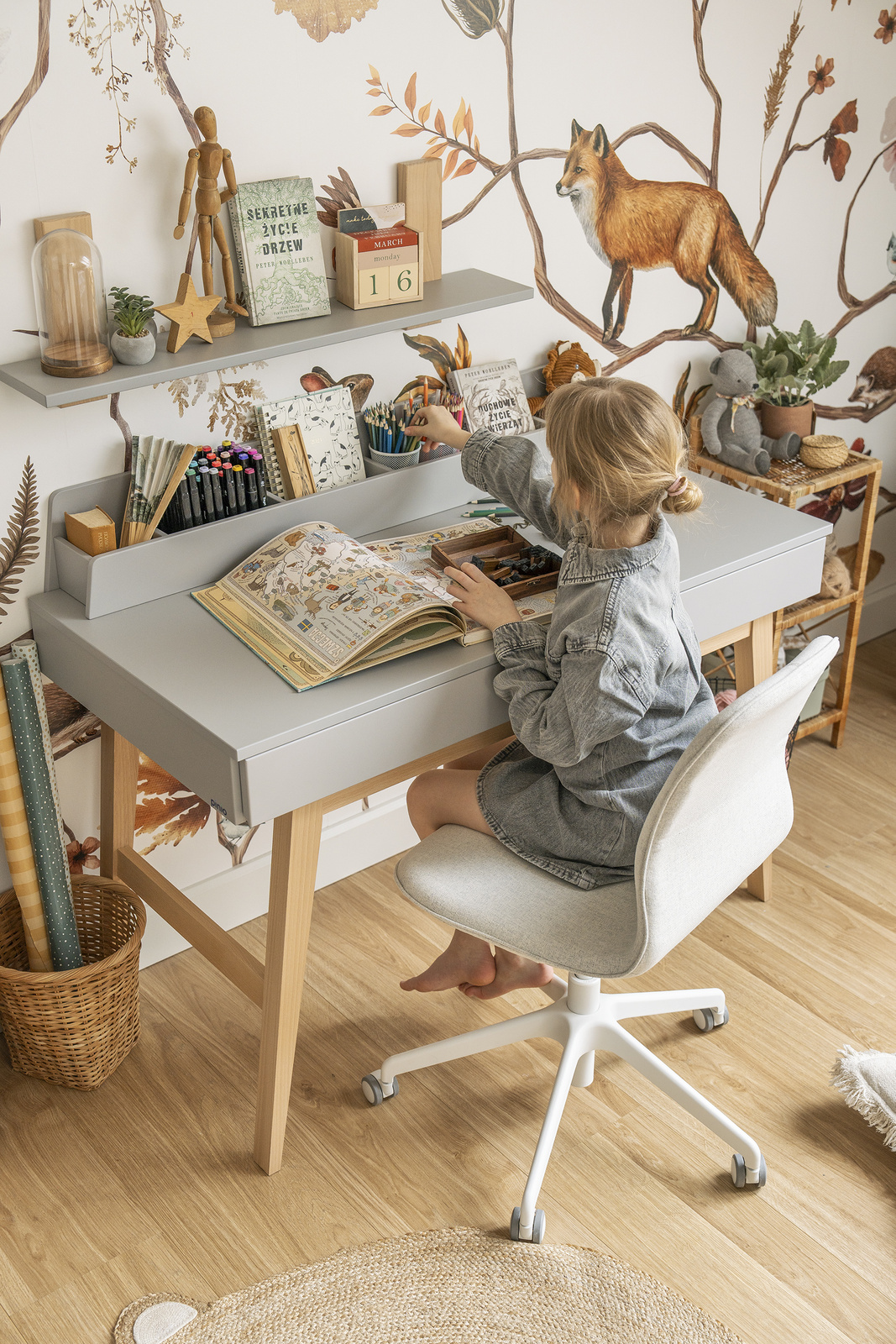 Sprawdź również inne meble z tej samej serii – łóżko młodzieżowe, szafę, komodę czy regał – i stwórz funkcjonalne oraz stylowe wnętrze dopasowane do potrzeb najmłodszych.