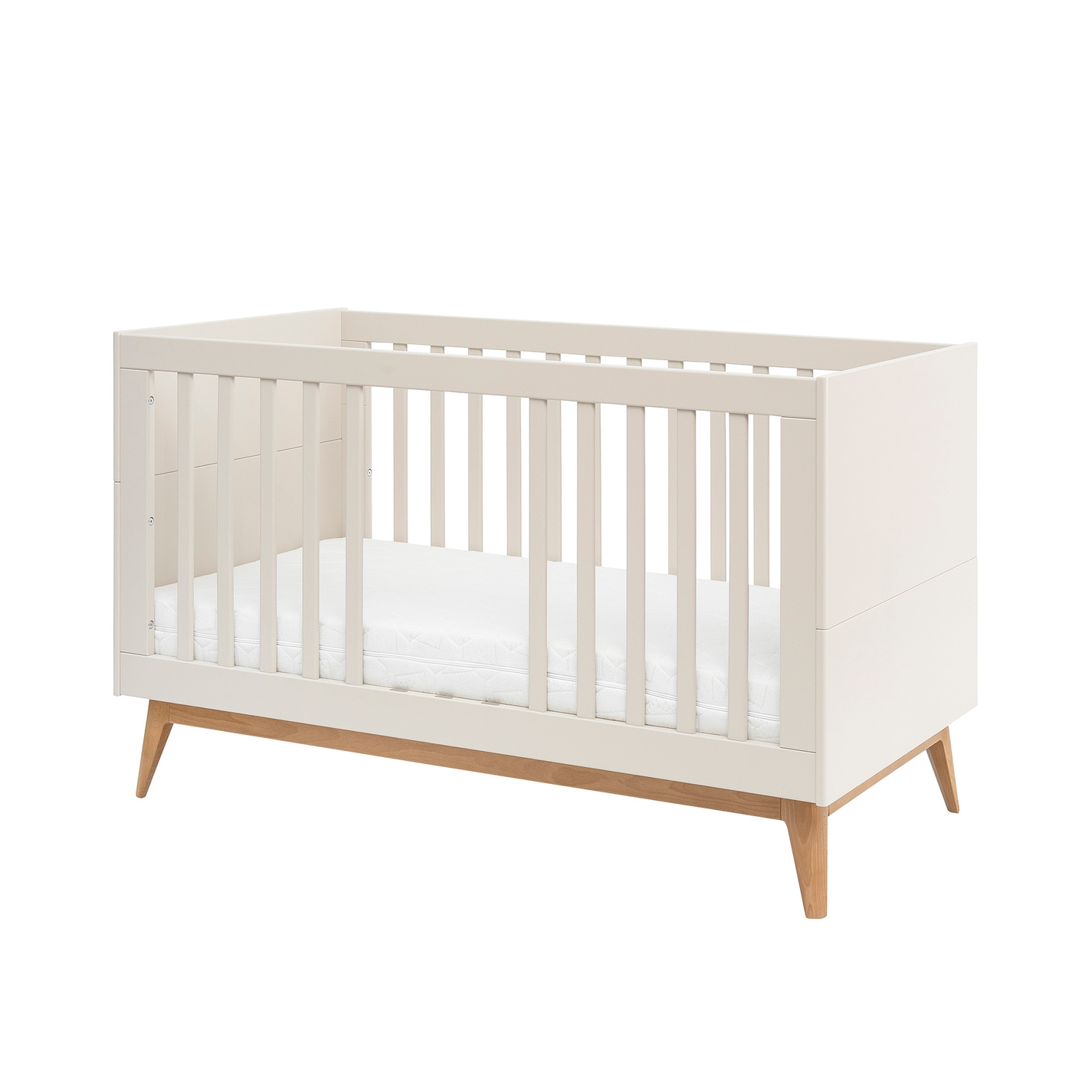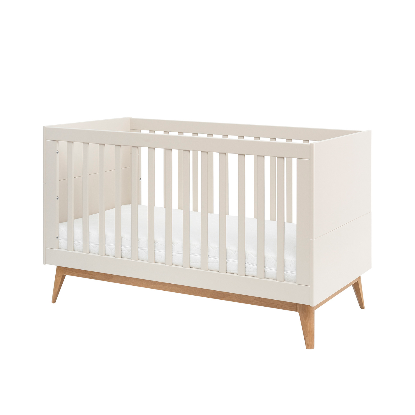 Nowoczesne łóżeczko dziecięce z kolekcji SETH zostało zaprojektowane tak, aby towarzyszyć dziecku przez wiele lat – od pierwszych dni życia aż do wieku przedszkolnego. Połączenie eleganckiego designu, bezpieczeństwa i funkcjonalności sprawia, że to mebel idealny dla nowoczesnych rodziców ceniących wygodę i trwałość. Gładkie linie, subtelne detale oraz naturalne wykończenie w kolorze szampańskim nadają mu wyjątkowego, ponadczasowego uroku.