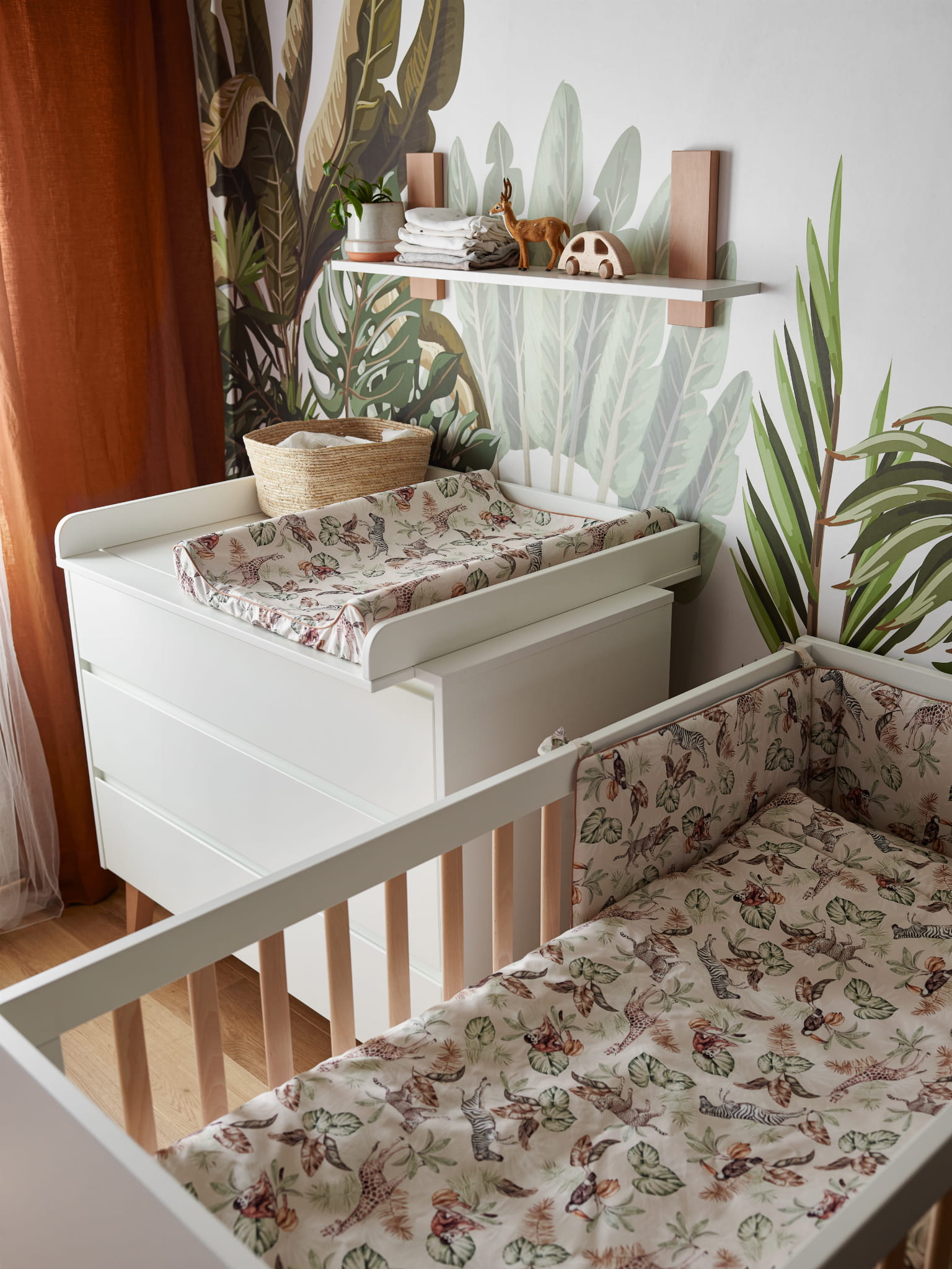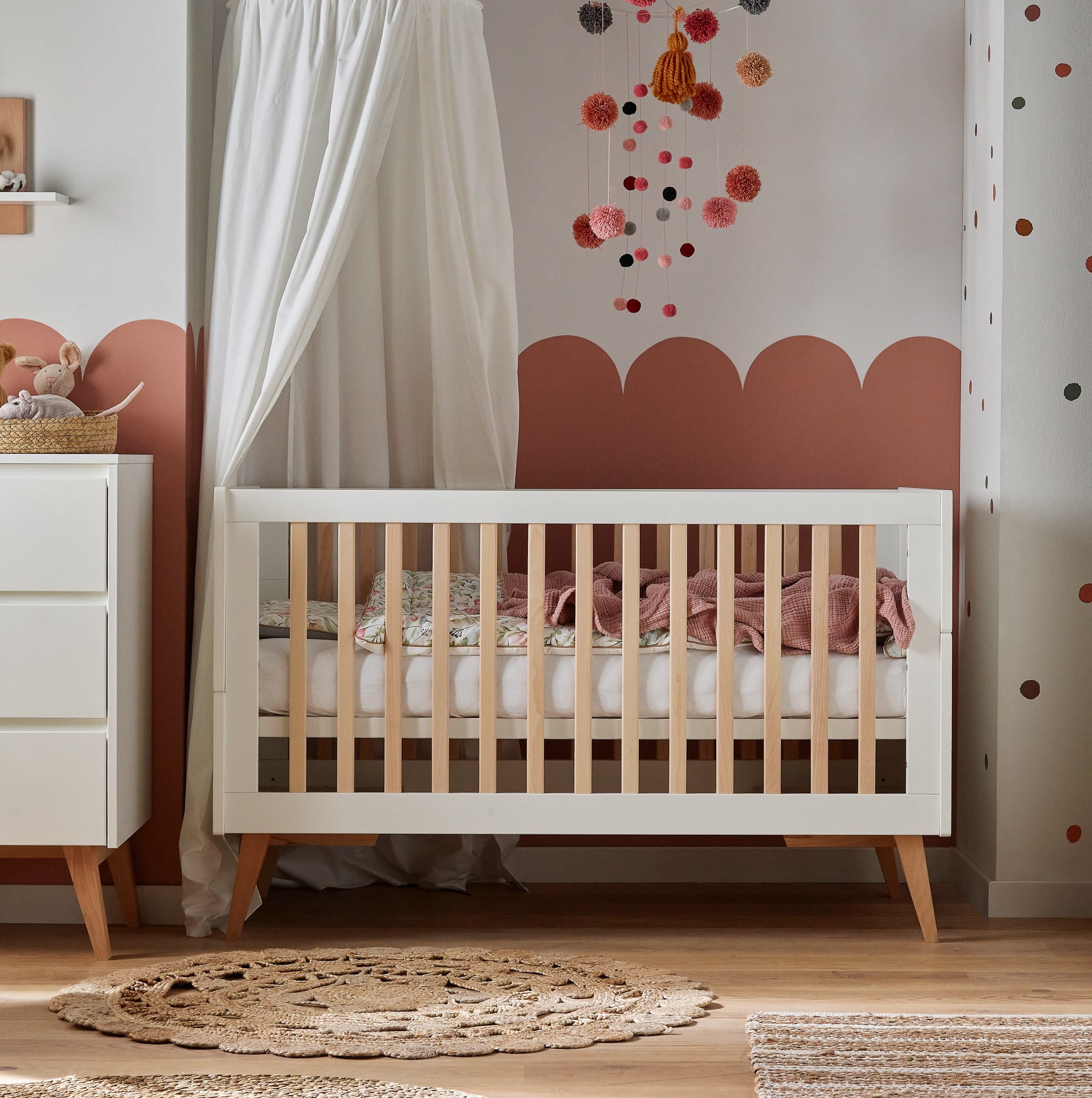Łóżeczko-tapczanik SWING łączy funkcjonalność z minimalistycznym designem. Drewniane elementy i delikatne detale sprawiają, że mebel doskonale komponuje się z innymi meblami z tej samej kolekcji, tworząc spójną i bezpieczną przestrzeń w pokoju dziecka.