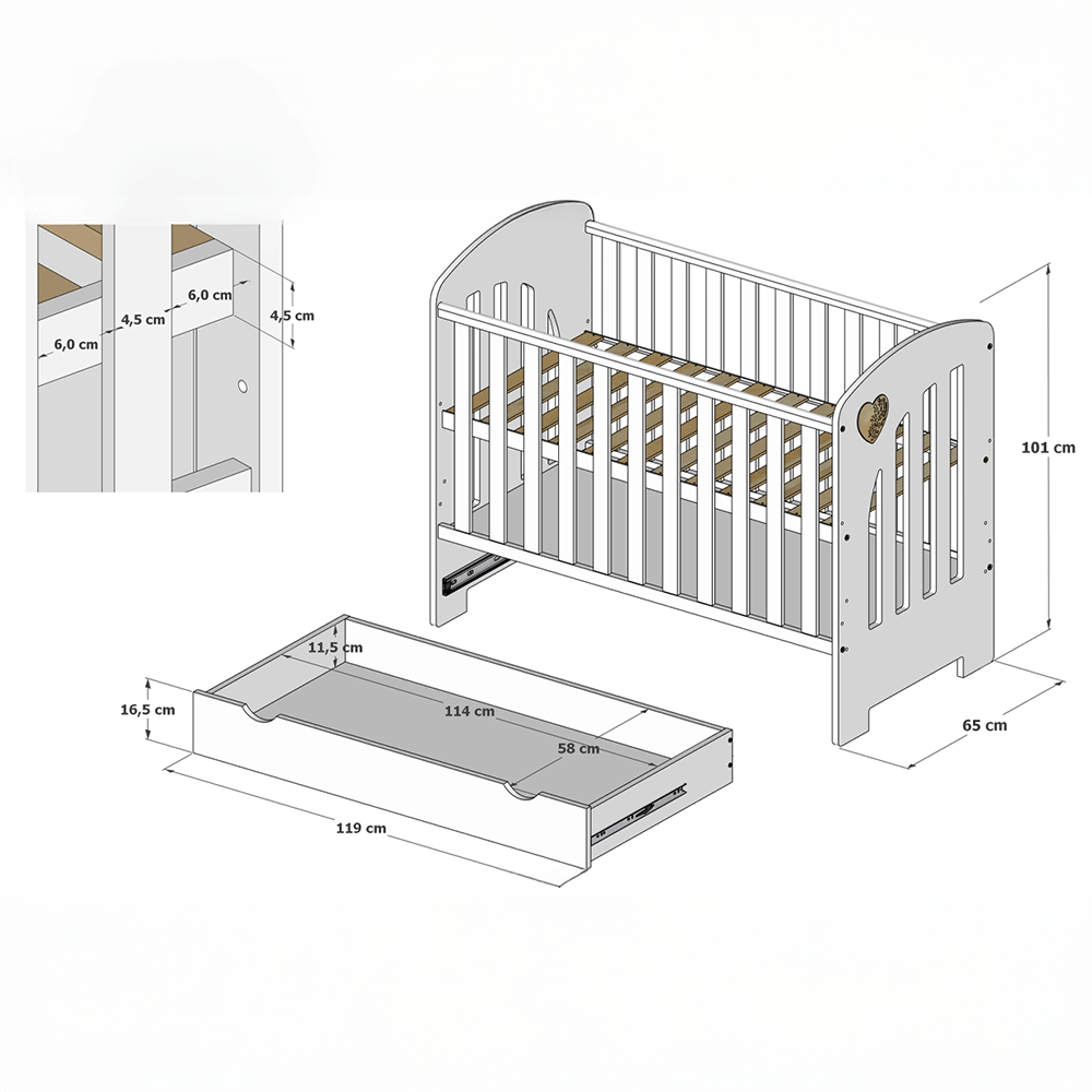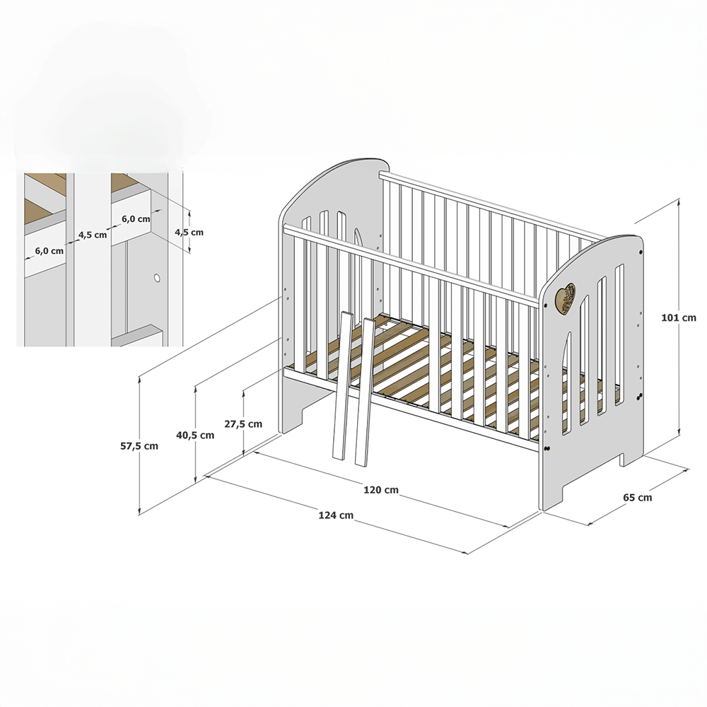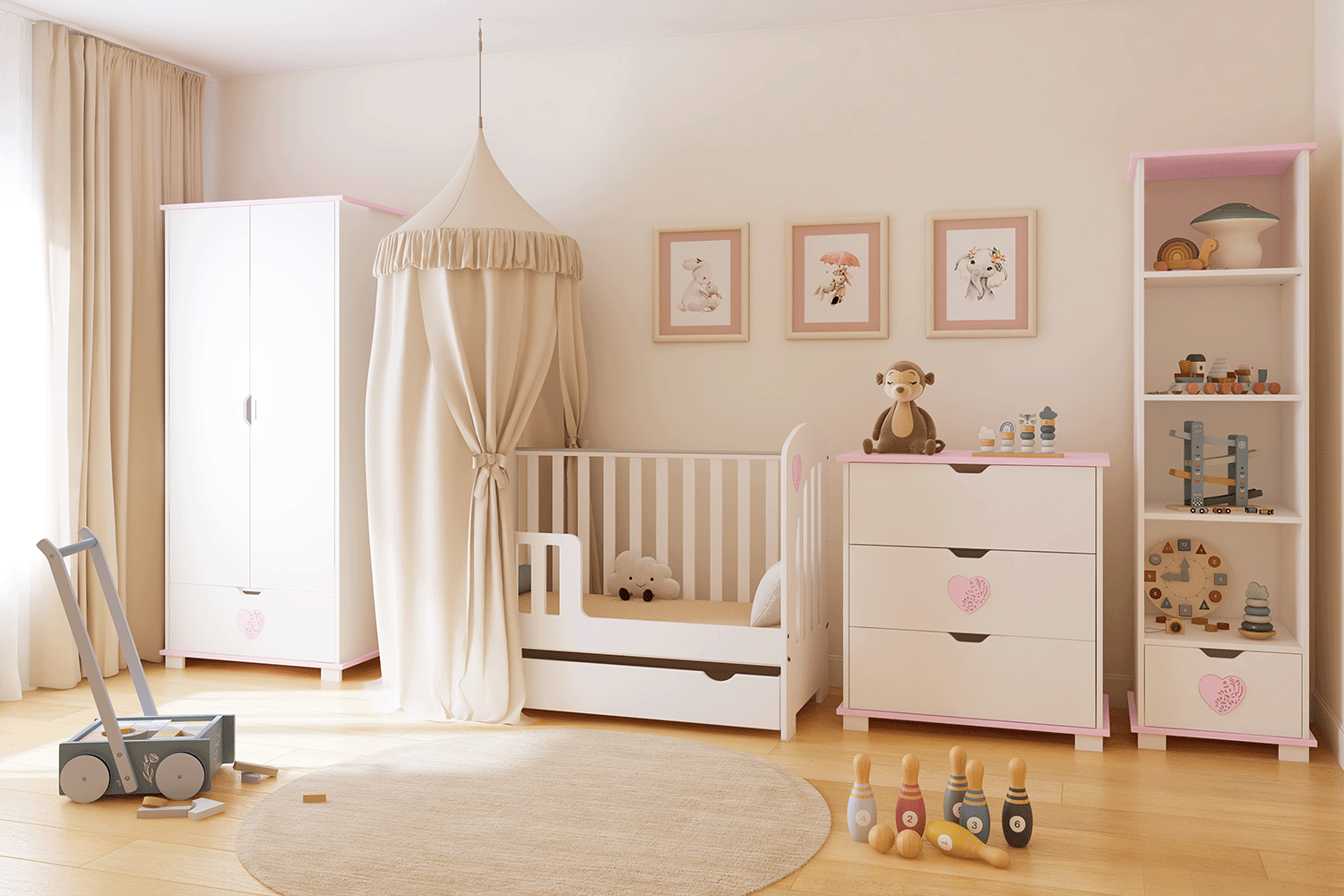 Łóżeczko dziecięce LOVE 120x60 to bezpieczne, funkcjonalne i estetyczne rozwiązanie dla niemowląt. Trwałe materiały, opcjonalna szuflada oraz przemyślany design ze szczebelkami i gryzakiem sprawiają, że łóżeczko zapewnia komfort, bezpieczeństwo i wygodę zarówno dziecku, jak i rodzicom.