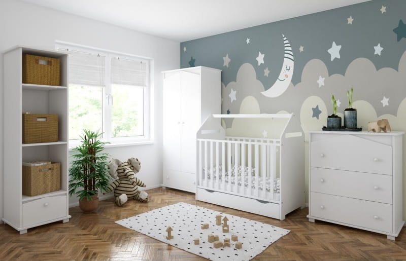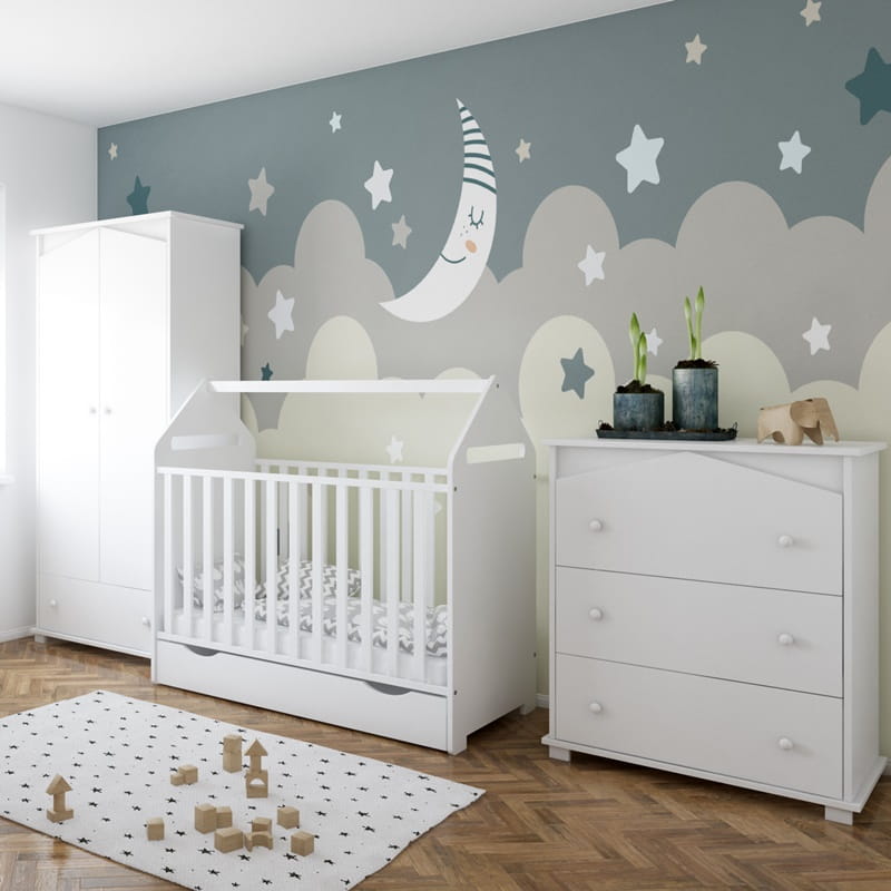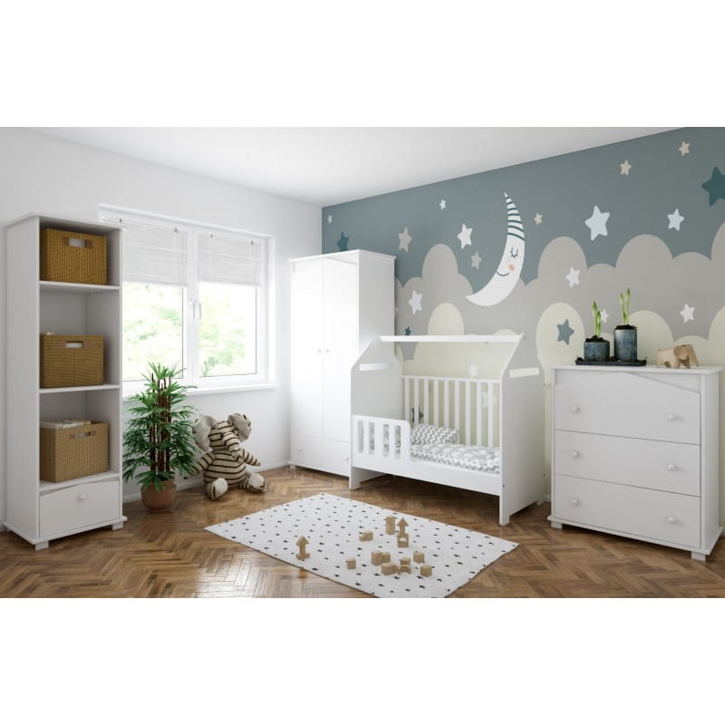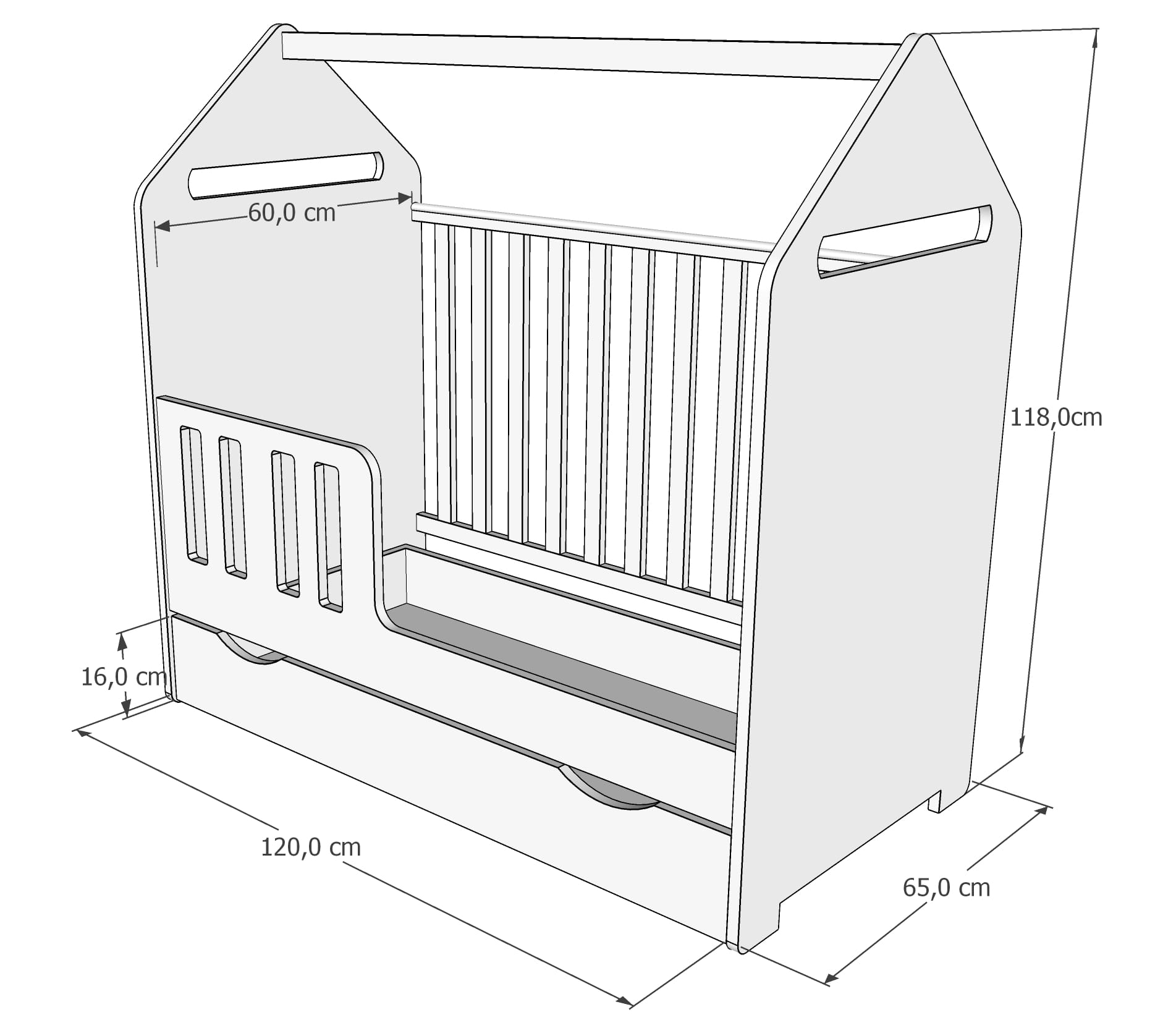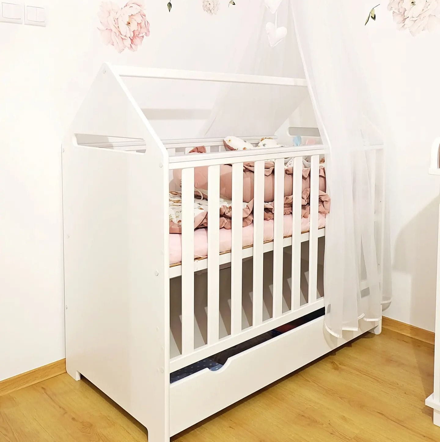 Łóżeczko HOUSE BABY charakteryzuje się prostym i klasycznym wzornictwem. Łóżeczko wykonane z wysokiej jakości płyty meblowej, sklejki oraz drewna sosnowego.