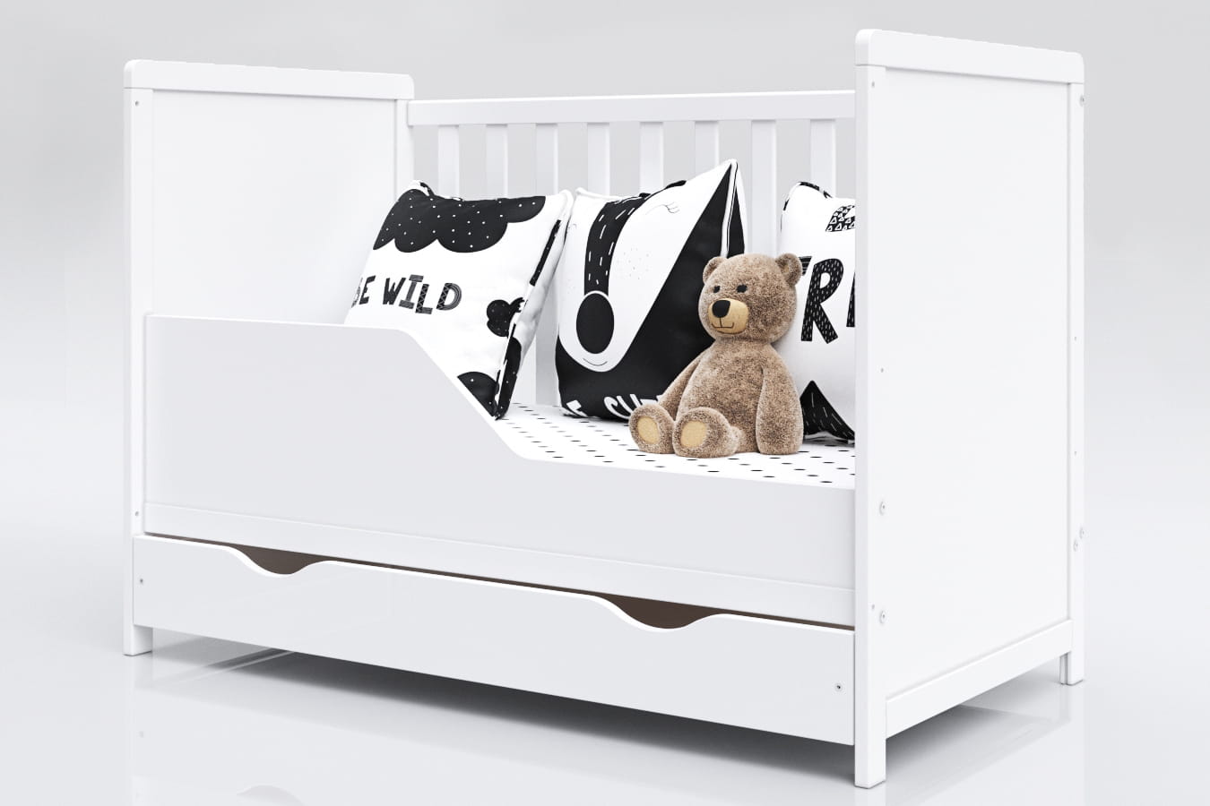 Funkcja tapczanika gwarantuje, że dziecko będzie mogło używać łóżeczka jeszcze w przedszkolu.
