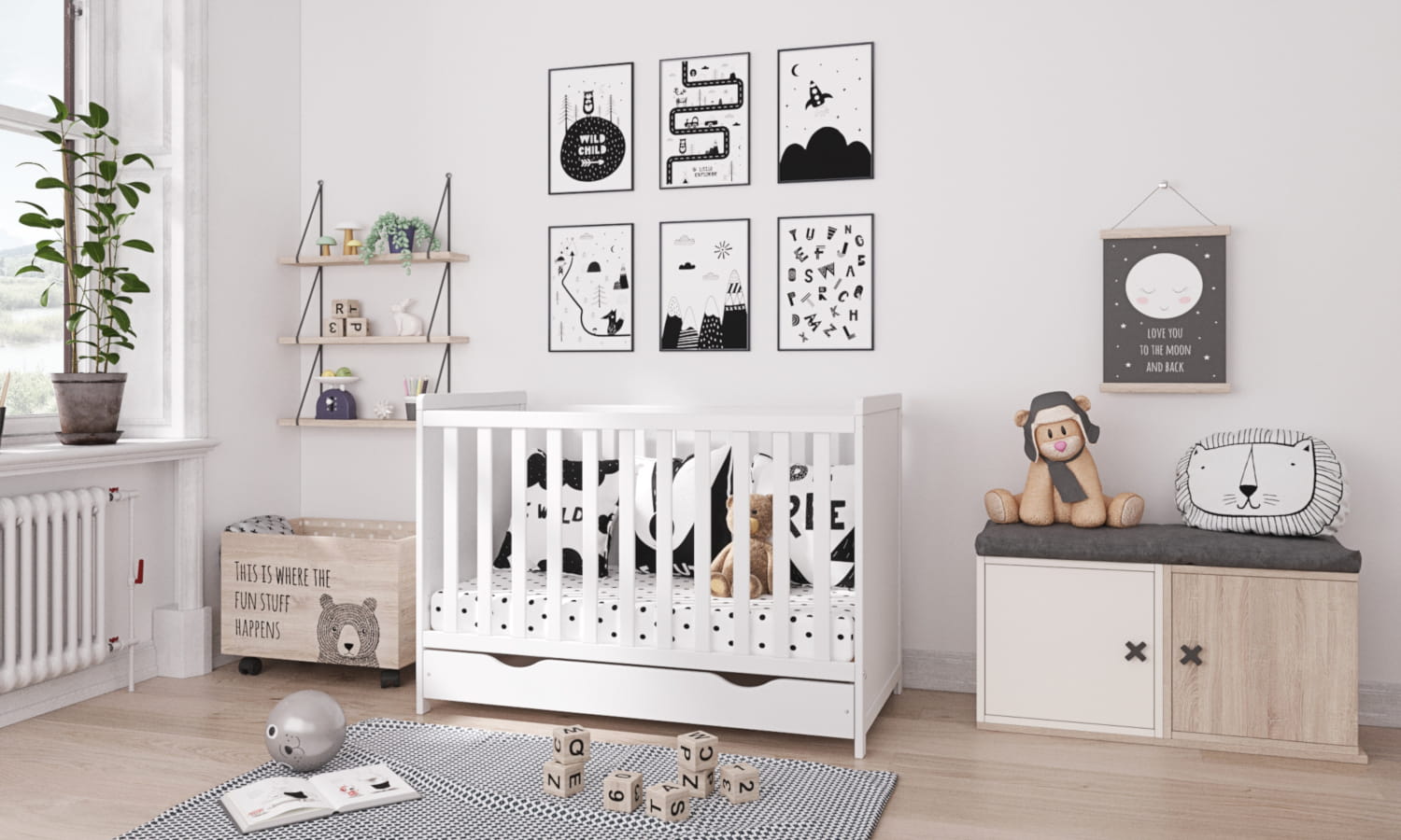 Łóżeczko przeznaczone jest dla maluszka już od pierwszych dni życia a dzięki wyjmowanym szczebelkom i regulowanej wysokości posłuży dziecku bardzo długo.