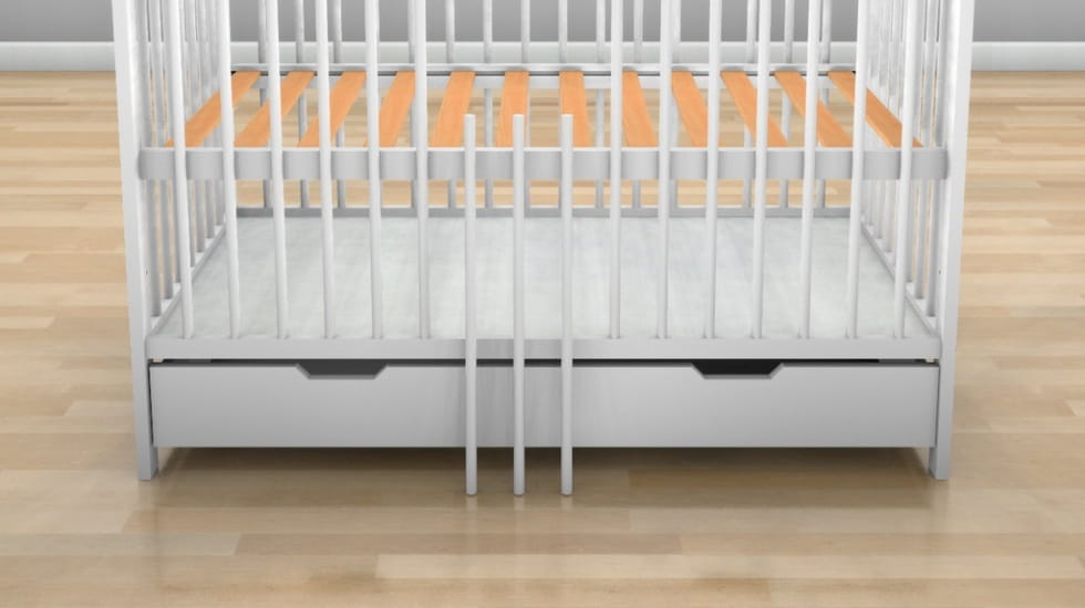 - 2 wyjmowane listewki - funkcja niezbędna dla starszego dziecka które samodzielnie wychodzi z łóżeczka