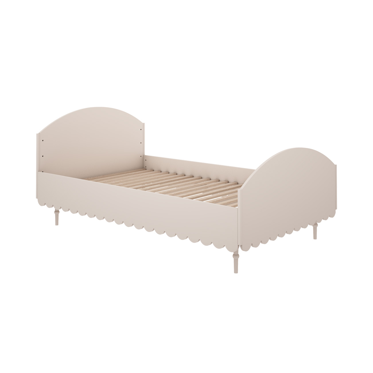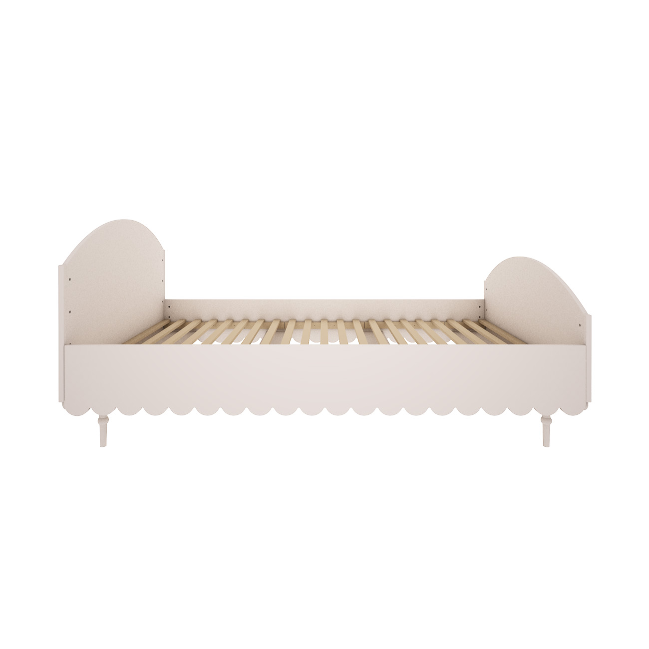 Łóżko 120 × 200 Babushka to wygodne i solidne łóżko, które łączy komfort codziennego użytkowania z charakterystycznym, dekoracyjnym stylem kolekcji Babushka. Subtelna falbanka wokół ramy nadaje mu lekkiego charakteru i sprawia, że mebel staje się wyraźnym elementem aranżacji pokoju.