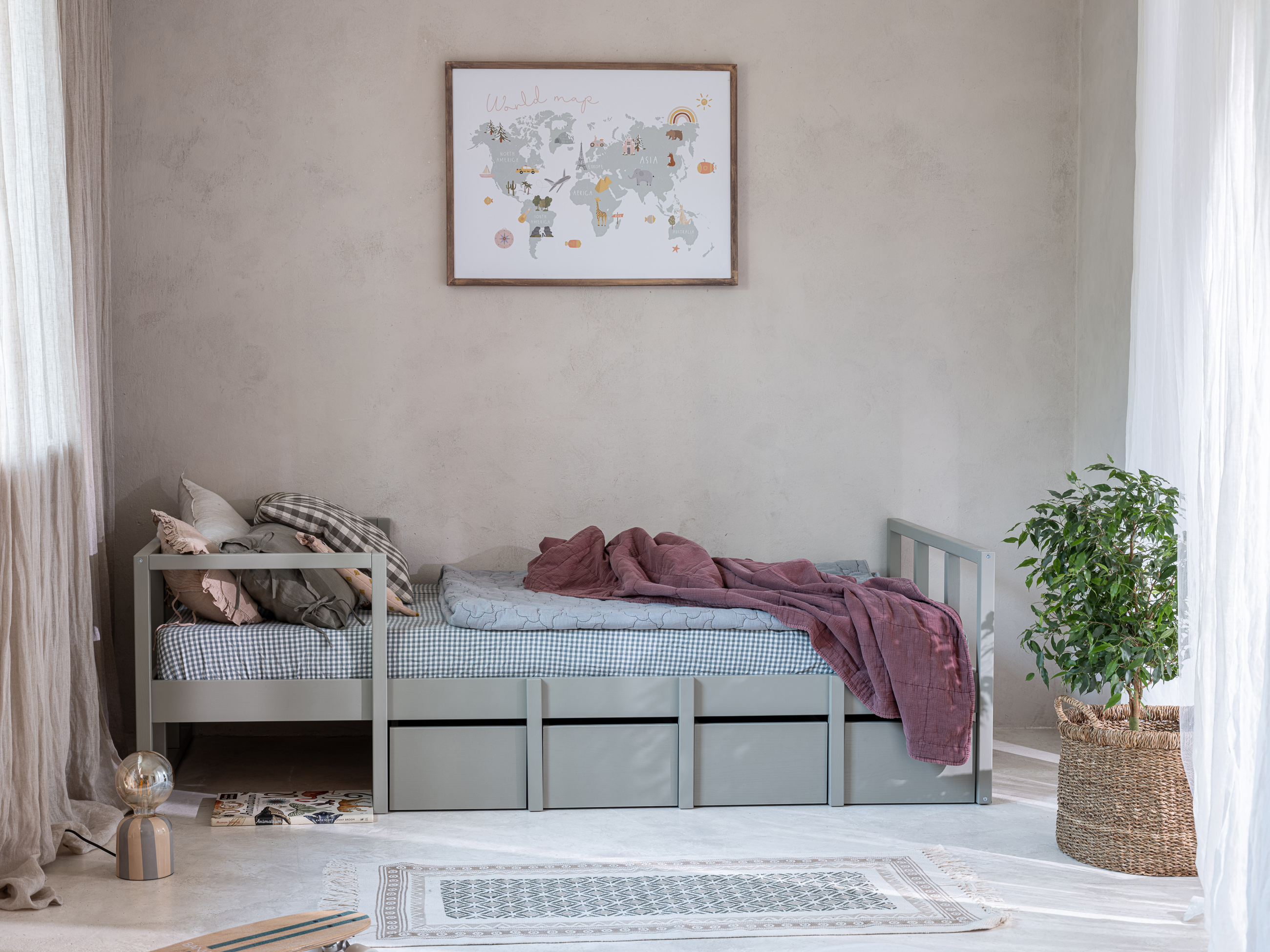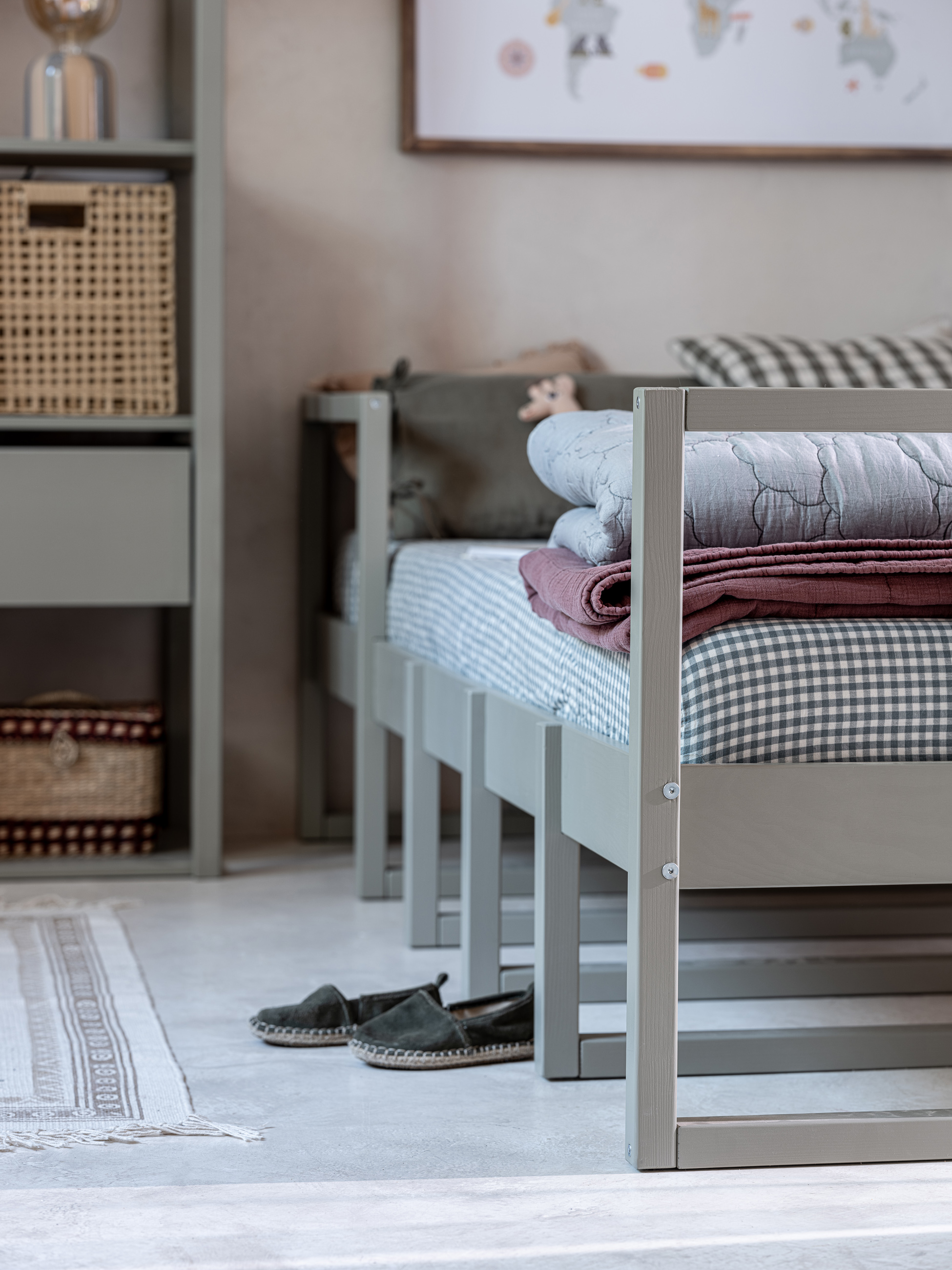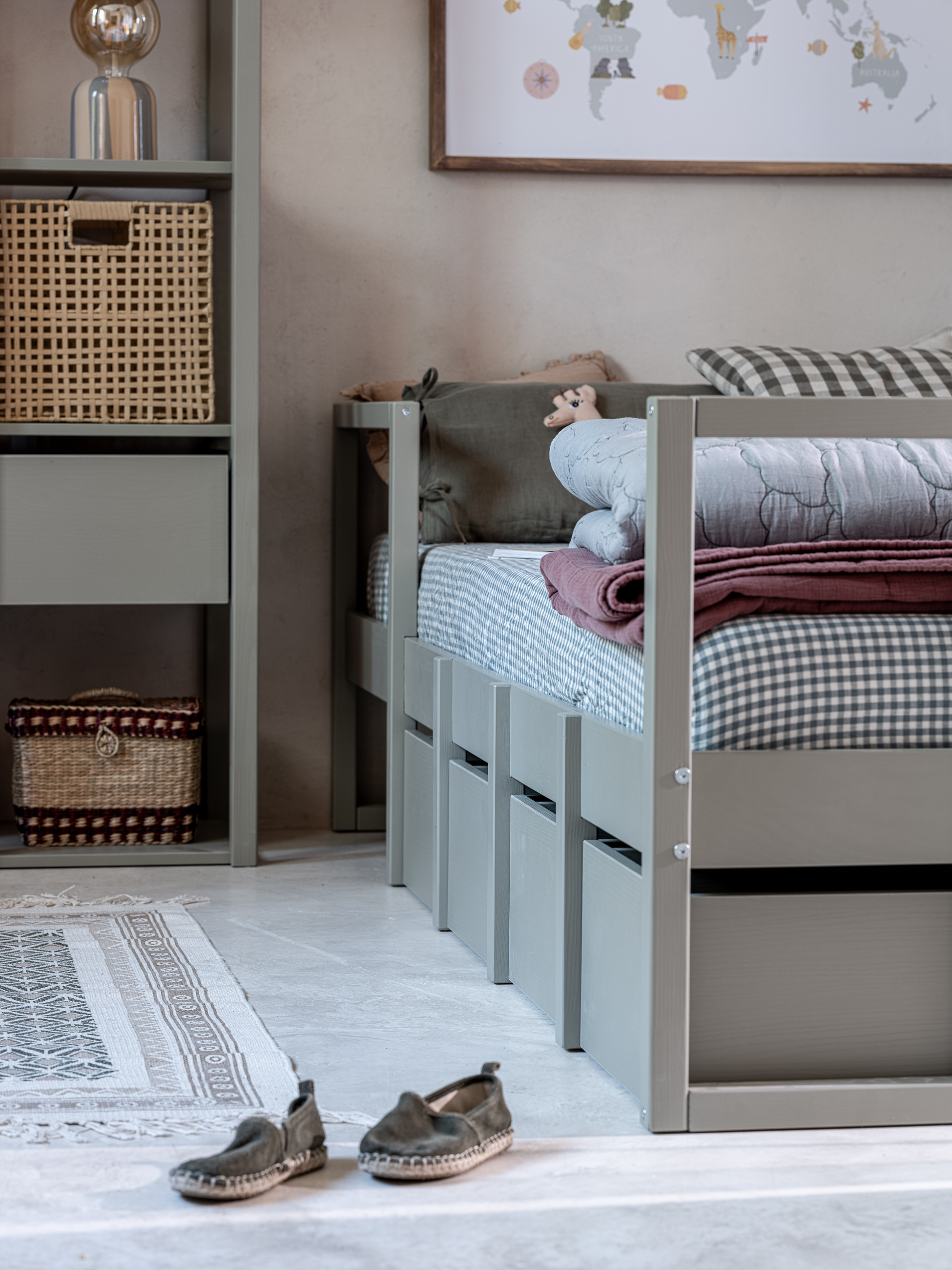 Możliwość dokupienia od 1 do 4 szuflad — dodatkowe miejsce na pościel, ubrania lub zabawki (szuflady nie są wliczone w cenę łóżka).