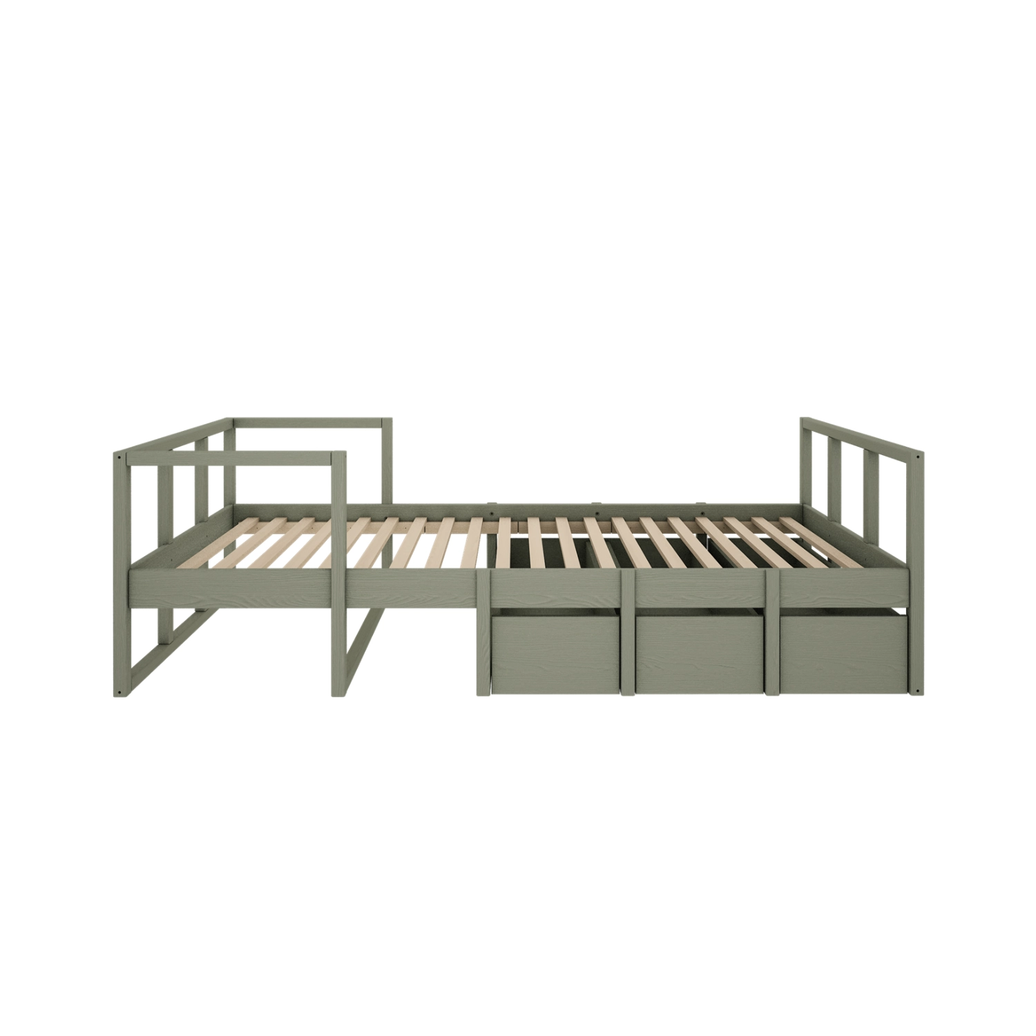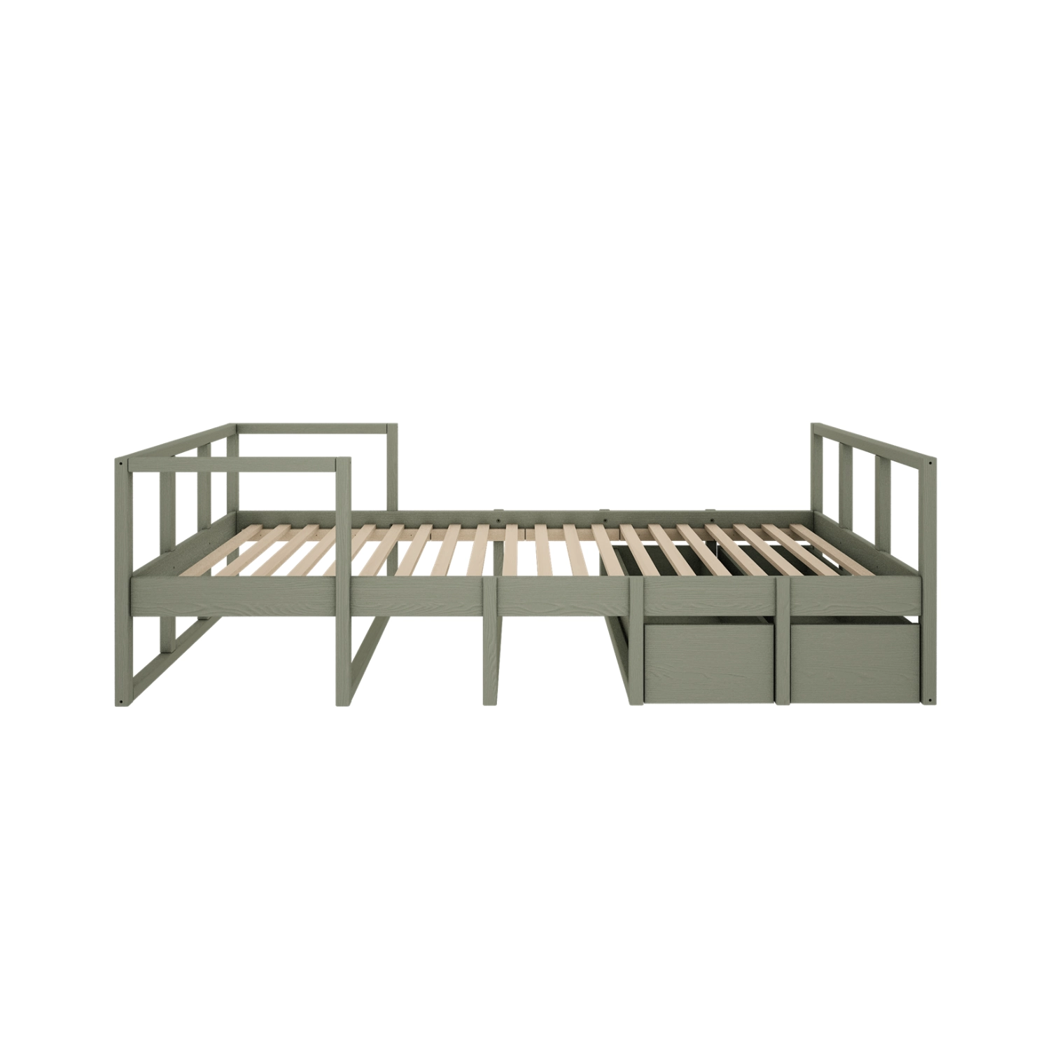 Łóżko można rozbudować o praktyczne szuflady — dostępna jest opcja montażu od 1 do 4 sztuk. To wygodne rozwiązanie pozwala maksymalnie wykorzystać przestrzeń pod łóżkiem i ułatwia utrzymanie porządku w pokoju dziecka.