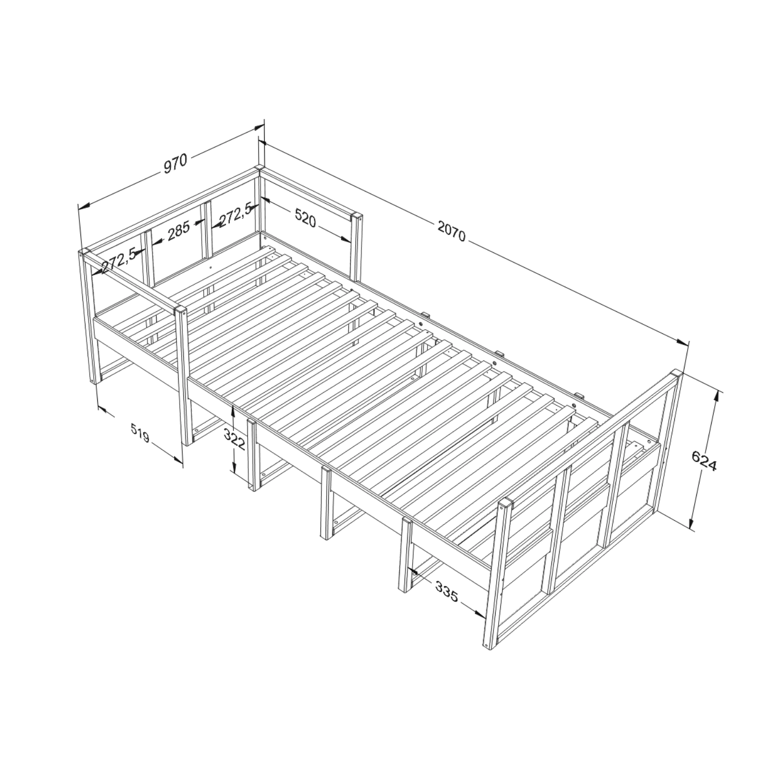 Powierzchnia spania 90 x 200 cm — idealna dla dziecka i nastolatka.
