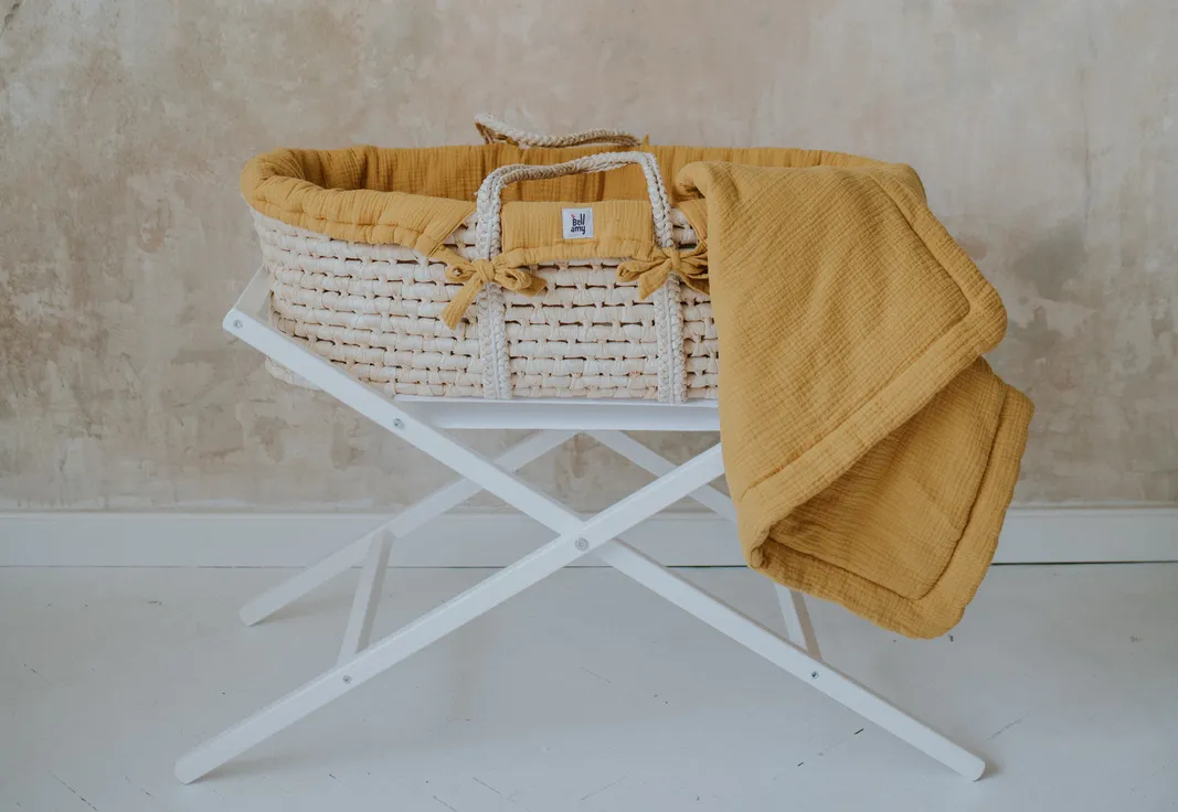 Kosz Mojżesza z materacem i stojakiem Meeko + tekstylia Honey