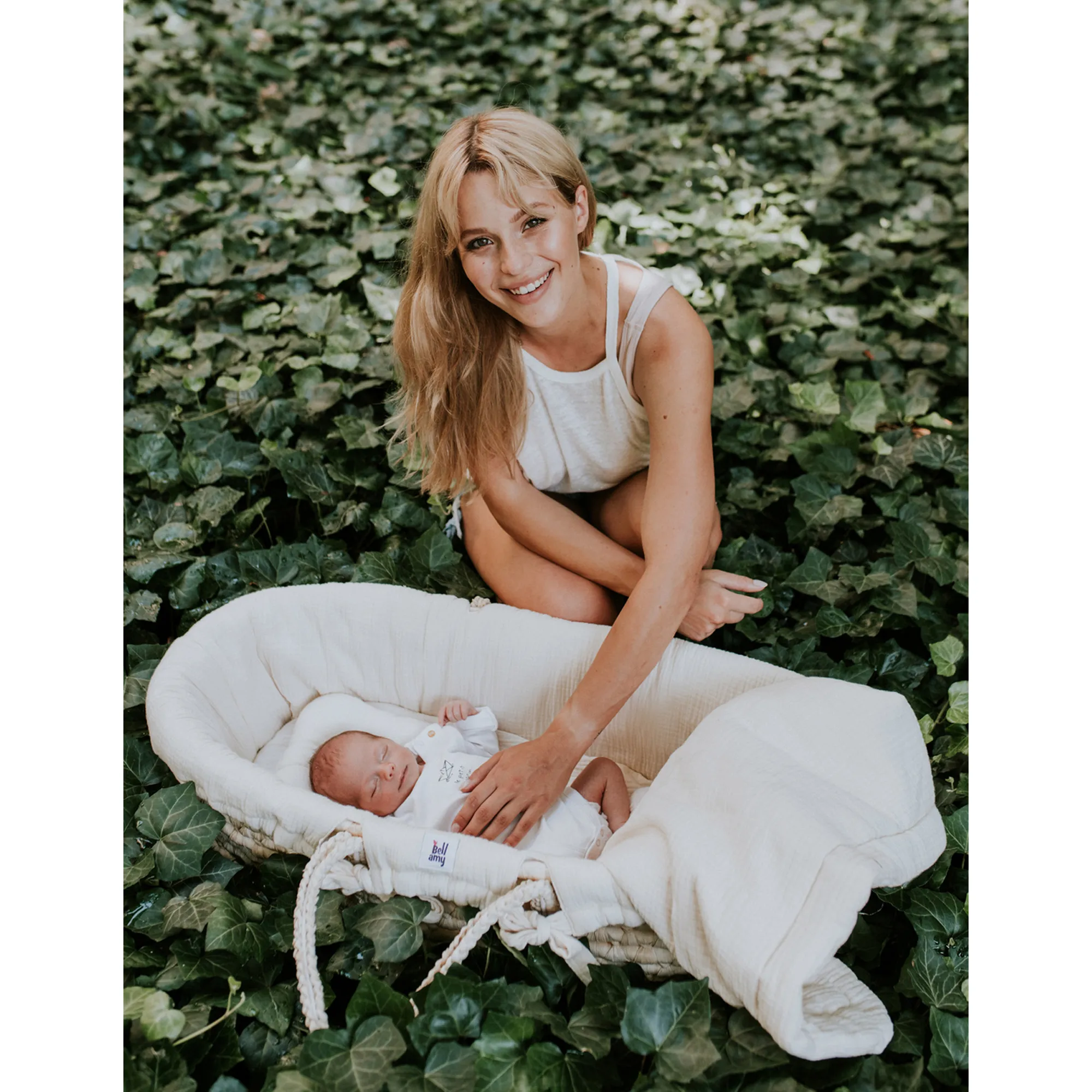 - Kompleksowe tekstylia muślinowe (wyściółka, prześcieradło, kołderka, poduszka z wgłębieniem na główkę)