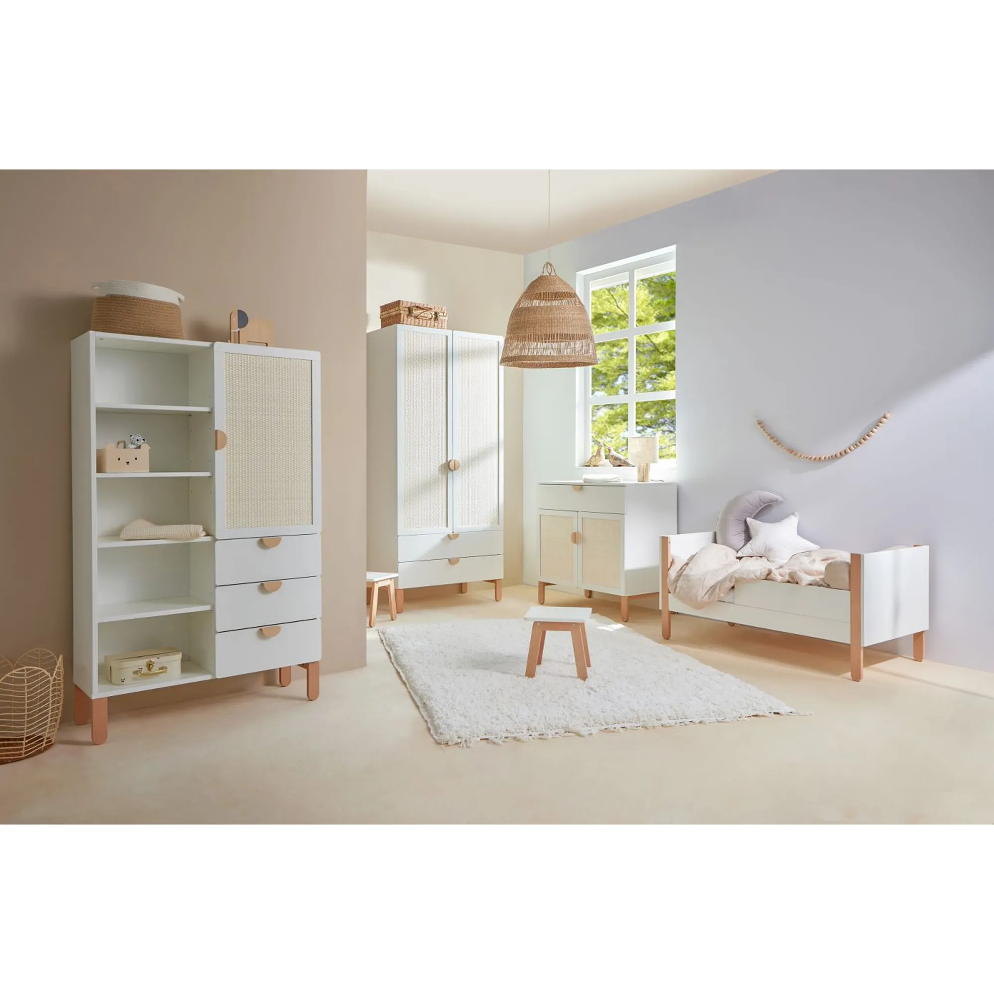 Łóżeczko RATATA to połączenie nowoczesnego designu z kolonialnym stylem, które wyróżnia się naturalnym charakterem i elegancją. Ażurowa faktura ratanu oraz zaoblone kształty tworzą mebel o wyjątkowej estetyce, który będzie nie tylko funkcjonalnym miejscem do snu, ale także ozdobą pokoju dziecięcego. Dzięki wysokiej jakości materiałom i możliwości przebudowy na tapczanik, RATATA posłuży Twojemu dziecku przez wiele lat.