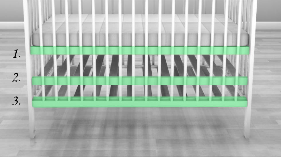 (najwyższy dla niemowlaka 0+ a najniższy dla dziecka samodzielnie stojącego w łóżeczku_