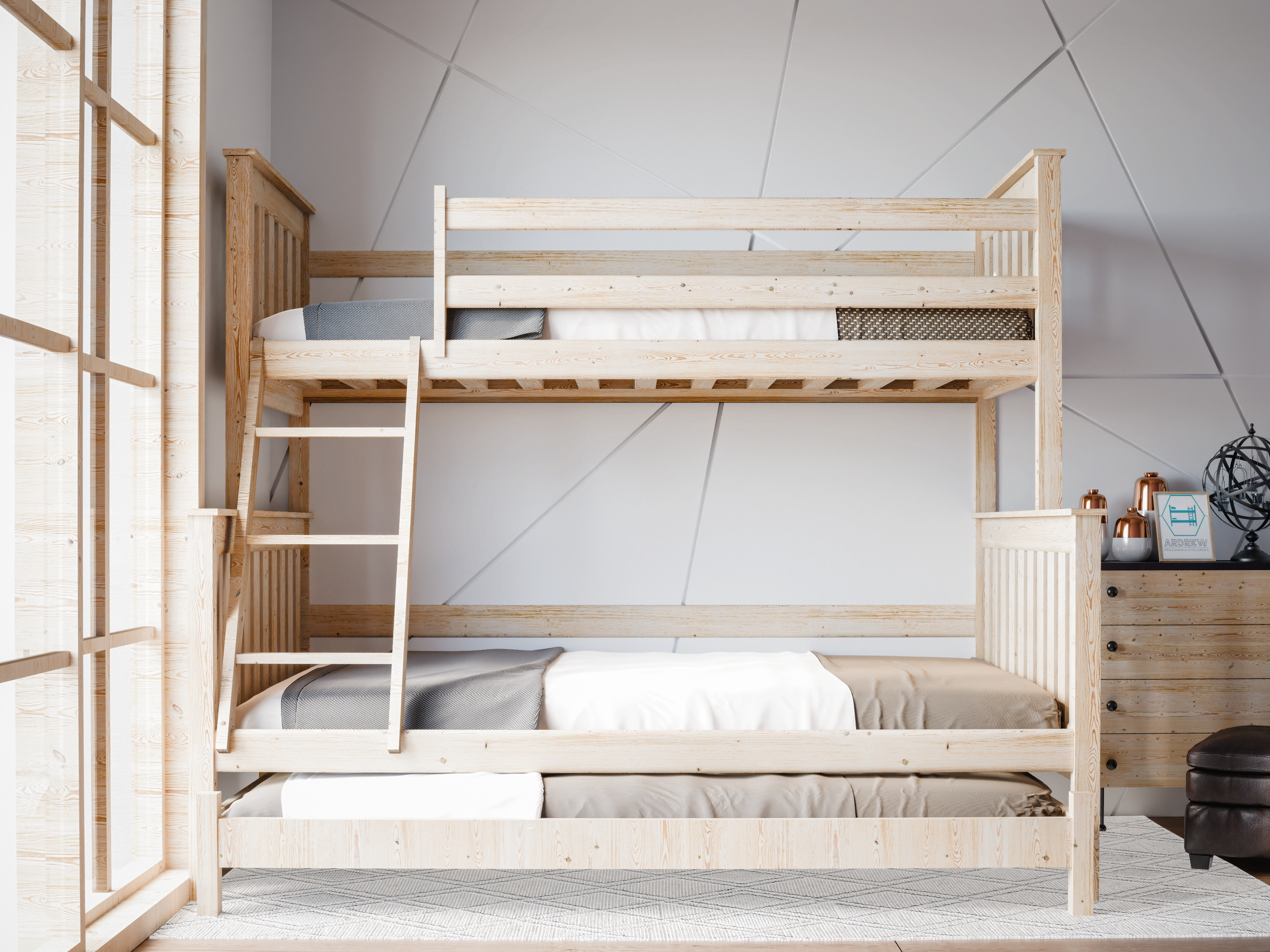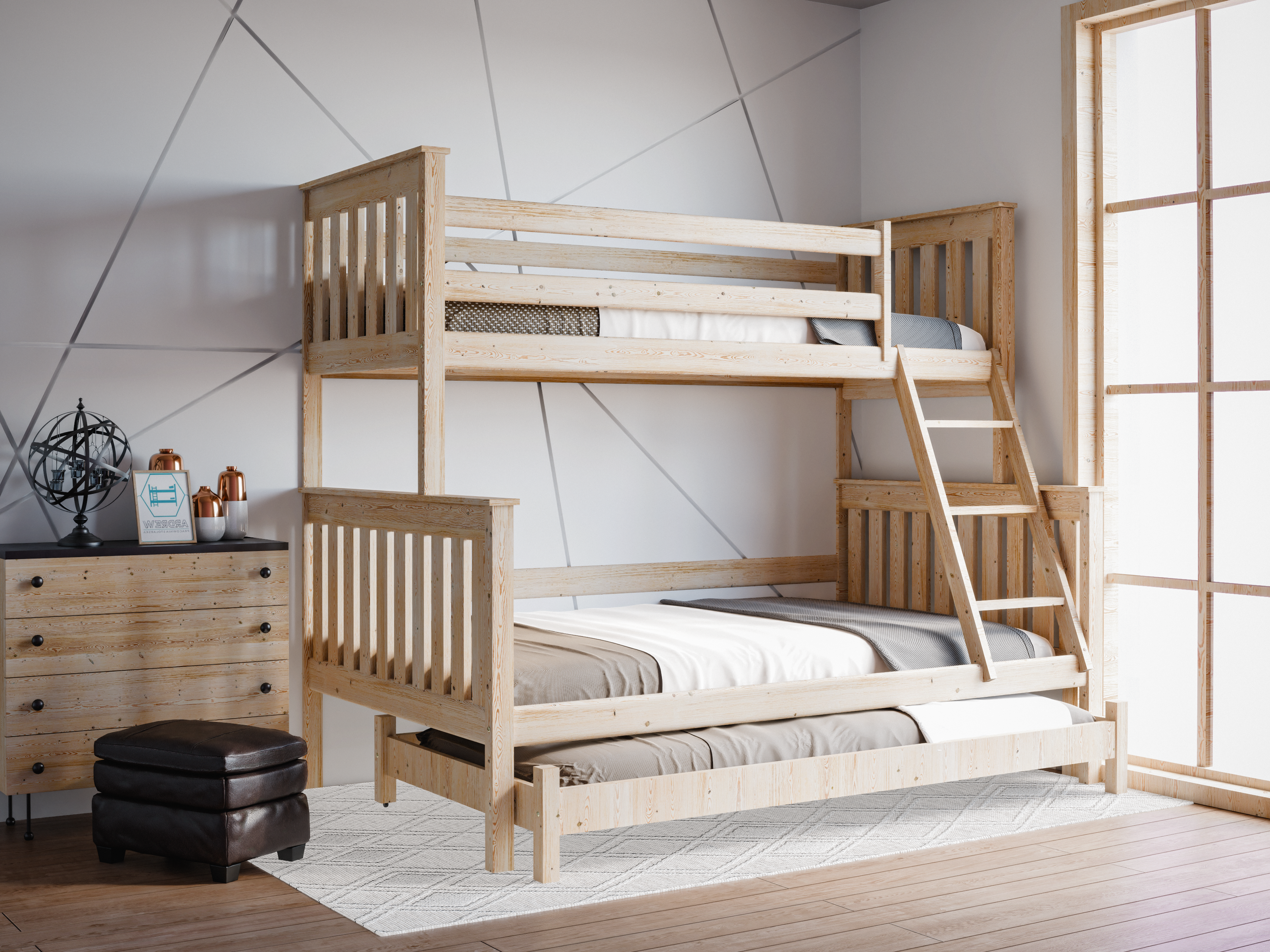 Łóżko piętrowe 3-osobowe Berlin to idealne rozwiązanie dla rodzin z dziećmi, rodzeństwa dzielącego pokój lub osób, które chcą maksymalnie wykorzystać przestrzeń w mieszkaniu. Model Berlin łączy w sobie solidne wykonanie, bezpieczeństwo i wygodę, a dzięki dodatkowej, wysuwanej konstrukcji zapewnia miejsce do spania nawet dla czterech osób. Świetnie sprawdzi się w pokoju dziecięcym, młodzieżowym, jak i w pokoju gościnnym.