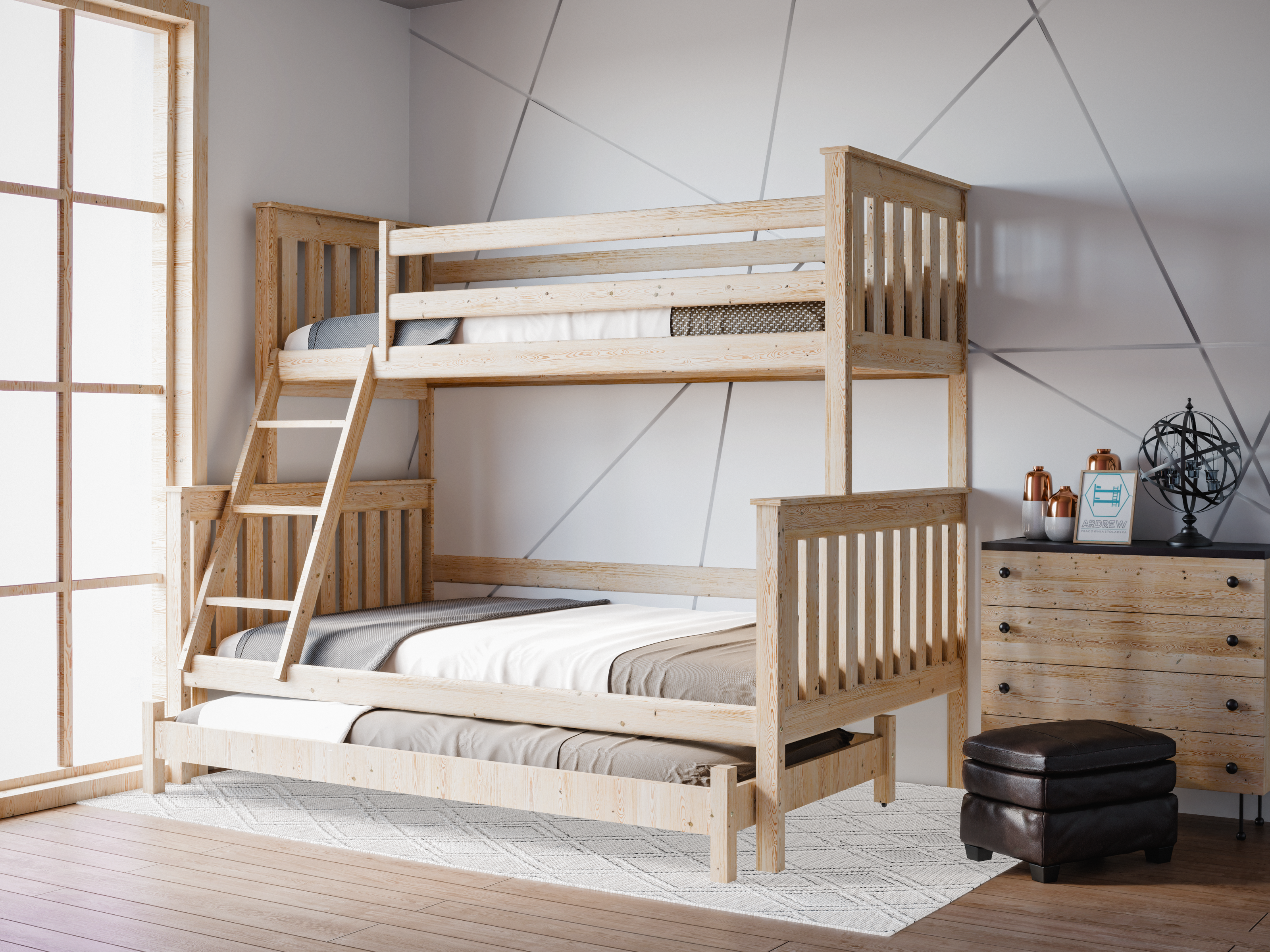 Łóżko piętrowe 3-osobowe z wysuwanym łóżkiem Dallas - Sosna